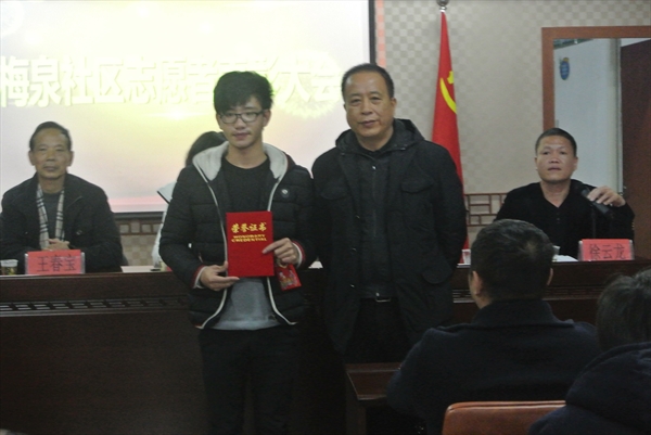 12月28日上午,梅泉社区居委会在道德讲堂开展了2014年梅泉社区志愿者表彰大会。此次大会由梅泉社区徐云龙委员主持,鲁建晓、王春宝、吴海燕等社区委员出席,禁忌书屋 “艺家人”青年志愿者协会,温州医科大学,温州大学城市学院,温州职业技术学院的志愿者参与此次表彰大会。 9点50分,志愿者表彰大会正式开始,首先是梅泉居委会为志愿者带来的一段小短片,为志愿者回顾了2014年以来的志愿者活动。丰富多彩的社区生活,快乐充实的志愿者活动......社区委员对各个志愿者团队进行颁奖,禁忌书屋 “艺家人”青年志愿者协会被评为“2014年度先进志愿者队伍”,这也是对我们“载梦小舟”支教的志愿者们这一年来辛苦付出的肯定。随后,各获奖志愿者团队代表一一上台发言,禁忌书屋 “载梦小舟”负责人代表张静同学也上台作了发言,总结“载梦小舟”这一年来的感想,对志愿者表达了由衷的感谢,对一直支持的社区负责人和家长,以及可爱的小朋友们表示感谢。最后,在梅泉社区居委会委员鲁建晓女士的演讲下,本次志愿者表彰大会圆满划上了句号。 回首禁忌书屋 “艺家人”青年志愿者协会与梅泉社区合办“载梦小舟”绘画班这几年所走过的路程,有感动,也有快乐,我们的支教活动也会一如既往地开展下去,为更多的人提供帮助,这就是志愿者的精神! (通讯/拍摄:刘子彰)