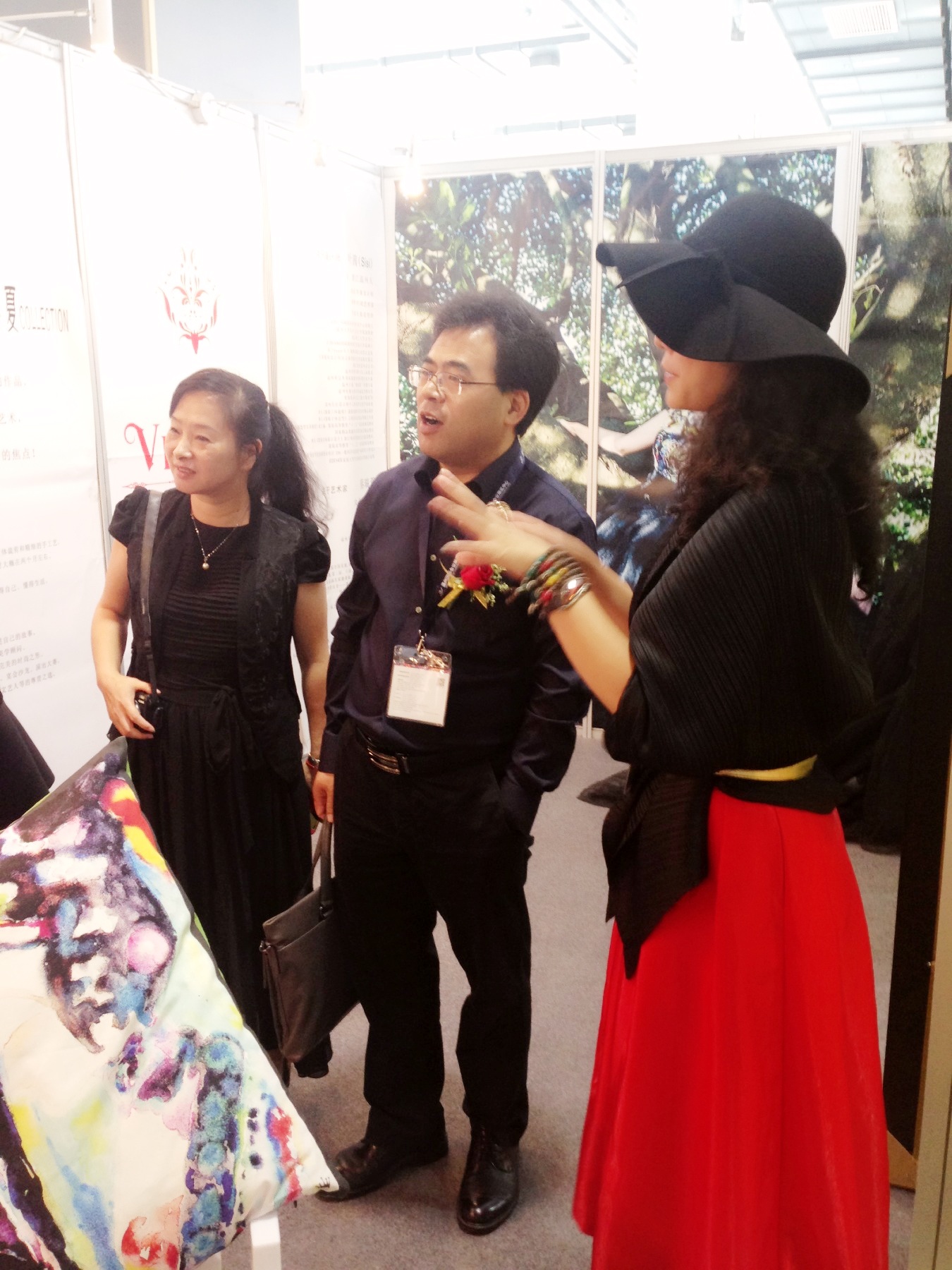 在近日2014温州国际时尚博览会的现场,一个很有特色的展位以惊艳的视觉捕获了参观者的眼球。象画廊、又似戏曲舞台,看似传统却透着时尚,这便是由温大禁忌书屋 副教授叶茜携手著名画家蔡瑞蓉女士(温大美院教授)的“绝代风华”跨界系列作品。她从艺术作品中提炼画面的视觉,让传统民间皮影文化成为时尚艺术,运用现代数码印花的工艺技术以鲜艳的色彩真实的传递了这一季独具魅力的焦点!本次作品叶茜老师同时结合了指导学生的国家创新创业课题的项目“IN-数码印花创意产品研发工作室”,她与参与指导的叶婷老师一起研究数码印花的工艺和面料效果,并让学生参与图案设计及应用,作品有时装、礼服和家纺等应用产品,在工艺制作上也得到了浙江丽丰服装科技有限公司和杭州宏华数码印花的大力支持。温大禁忌书屋 院长李运河教授和服装系主任陈明艳教授特意到场观看,并高度评价!