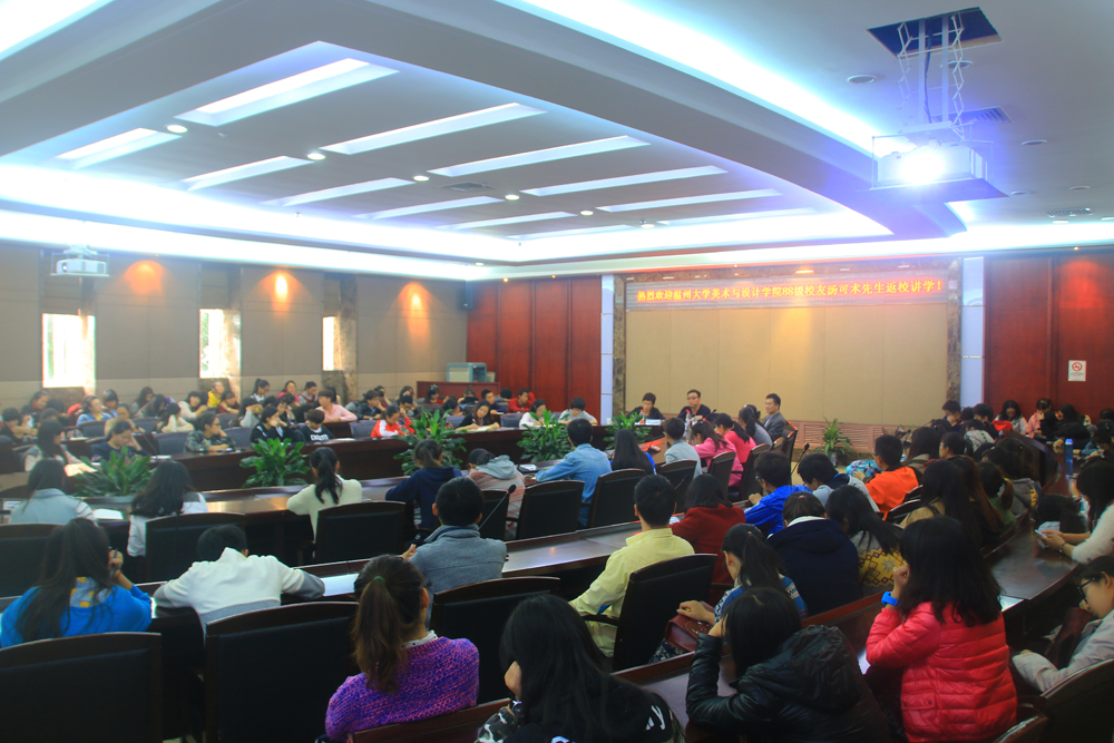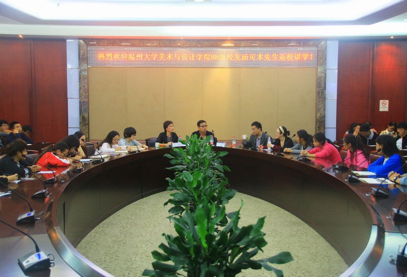 11月12日下午,禁忌书屋 校友论坛在岩松堂白鹿厅举行,温州铂尔曼酒店董事、温州奥嘉国际酒店管理有限公司总经理、美院88级校友汤可术先生应邀主讲,发展联络处(校友办)处长周伟国、院党总支书记郑彩莲莅临讲座现场,由郑彩莲书记主持论坛。美院师生慕名前往听讲,全场座无虚席。 讲座开始前,郑彩莲书记对汤可术的创业经历、人生成就做了简单的介绍,并对他的到来表示由衷的期待和热烈欢迎。接着,汤可术先生为美院师生们带来了一场内容丰富、思想深刻的讲座——“汤可术与他的三个愿望”。 他从自己的三个愿望切入主题,即开一个贯有自己艺术理念的五星级酒店,在经济实力允许并且对自己的人生有一定感悟时拍一部电影,在晚年时期写一部自传体回顾自己的一生。接着,他带我们走进了他的大学时光。那个物质贫瘠、社会动乱的时代所折射出的青年人热血澎湃、激情燃烧的情怀在他的大学时代里表现得漓淋尽致。一是对自由的渴望,使他感受到有无穷的力量去施展,让他激情地面对生活,尽情过好每一天,去活出意义、活出价值;二是对艺术的钟爱,使他执着地去追梦、去奋斗、去坚持;三是革命思潮的影响,使他认识到想要成功首先要有独立生存的意识,其次要有胆识,最后要抓住机遇。他告诉同学们“人学了艺术,人生会变得有意思”,希望同学们把握好自己的专业特长,学会用专业去养活自己,用专业去奉献社会;更要珍惜现代社会的物质条件,把握时代脉搏,别让青春沉溺于享受。 作为一个创业成功的学长,汤先生又给在座的学弟学妹们提出了一些建设性的要求和建议,例如要跨学科多元发展,做事情要富有责任心并且严谨等等。之后的现场互动环节中同学们积极主动地与汤先生交流,汤先生认真、详细、耐心地给同学们解答疑惑,各位同学都受益匪浅。 此次校友讲座让学生们对大学充满了希望,点燃了学生规划未来的激情,鼓舞了学生创业的斗志。 提问环节摘录: 学生:汤老师,您是如何看待“没有不狂妄的青春”这句话的? 汤可术:我理解的“狂妄”是“激情”、“尽情”,这当然是一位年轻学生必备的两种生活态度,对生活、对专业是要保持这样的热度。但是,凡事要有度,比如谈恋爱就不能到无法自拔的地步。 学生:汤先生您好,我是视觉传达专业的,我想问下这个专业的就业前景您怎么看? 汤可术:这是一个前景非常广阔的专业。但是,专业是招牌,关键看技术,你们要学会灵活熟练地运用各种相关软件,还要提高自己的鉴赏力和审美能力。 学生:我高中的时候特别喜欢写作,怎样才能坚持最初的梦想? 汤可术:在大学里,想做喜欢的事情很容易,因为你们很自由,有大把大把地时间去发展你们的业余爱好,然而在工作后,会有各种牵绊逐渐抹杀你们的兴趣。所以请好好把握大学的时光,发挥兴趣、发展特长,且在工作后,能让兴趣有能有惯性地延续,让它成为生活的一部分,这样最初的梦想便不会被遗忘。 学生:创业和学习哪个重要? 汤可术:毫无疑问,你们现在要以学习为重。要先把基本功打扎实,不但要学好专业知识,还要学好社会知识,社会阅历是创业最基础的东西。 ……