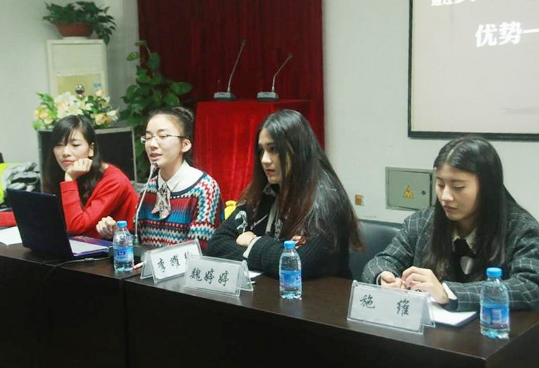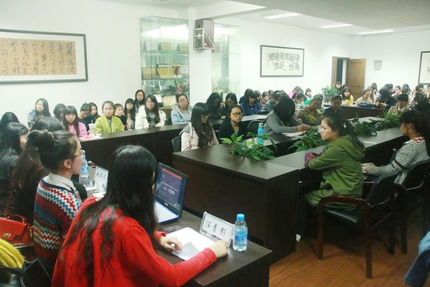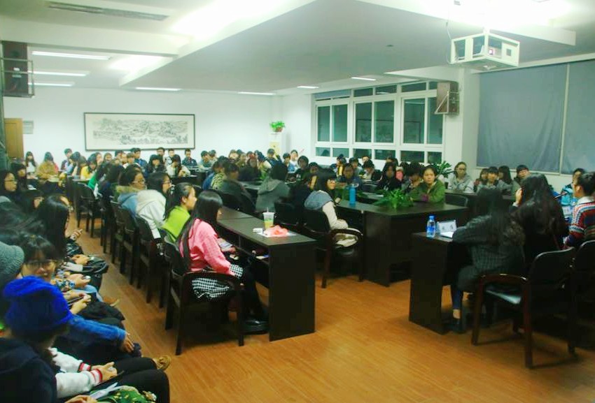 2014年11月13日 禁忌书屋 “‘艺’起分享”艺术大赛获奖经验交流会在美院2B4001举行。此次活动由院学风纪检部主办,他们邀请了去年在省级以上学科竞赛中获奖的四位同学来传授经验、分享感悟。她们分别是获“真皮标志•石门湾杯” 中国鞋类设计大赛优秀效果图奖的汪素影,荣获“第十届可可尼杯中国国际女装设计师大奖赛 ”入围奖的魏婷婷,荣获“中国OOH青年广告创意大赛” 优秀奖的李耀慧,荣获“2014年浙江省大学生艺术节美术比赛” 一等奖的施维。美院大一新生积极参与了此次活动。
