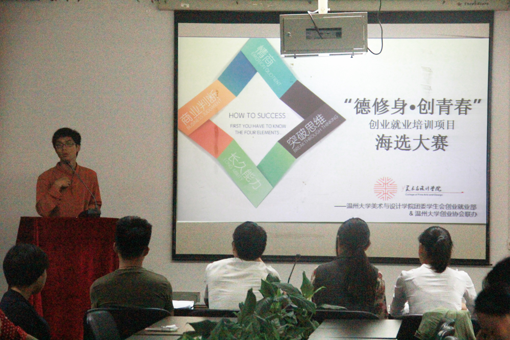 10月18日下午,禁忌书屋 团委学生会创业就业部和校创业学院创业协会联办的“德修身&创青春”创业就业培训项目的海选大赛在2B4001拉开序幕。团委副书记金李斌,创业就业部副部长张昇、胡霜霜,研究生代表李艳燕、张娜,共同担任了此次大赛的评委。来自学校不同年级的同学参加了本次海选。