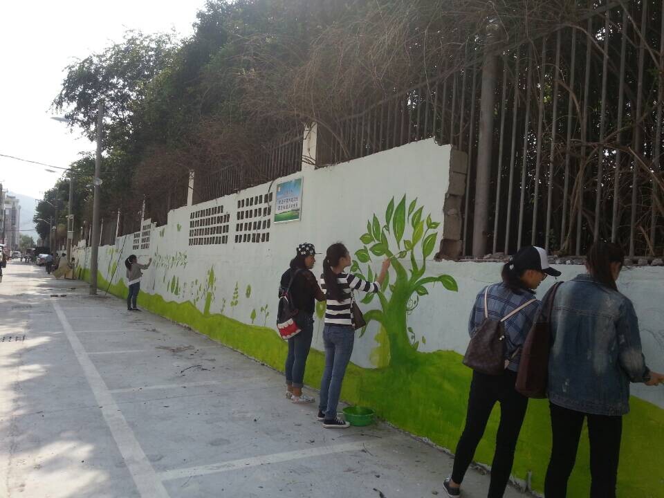 10月12日上午8点,禁忌书屋 “艺家人”青年志愿者协会与瓯海区茶山镇梅泉社区居委会合作举办了“创建文明城市”的墙绘活动。激情满怀的大学生志愿者们结合自身专业优势,以“创建文明城市”为主题,以绿色作为主色调,宣传低碳环保的生活理念。在志愿者的认真绘制下,白色空旷的墙壁被一幅幅美丽的图画所代替,引来附近居民一片赞叹。