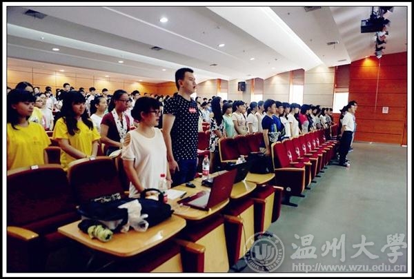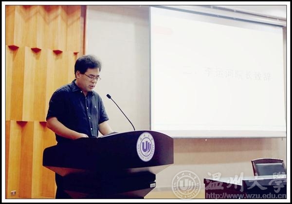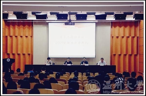 金色九月,美丽温大又迎来了一批新成员。9月19日上午,232位本科生,6位研究生相聚在温州大学岩松堂雁山厅,参加2014级新生开学典礼,共同庆祝新梦想的启程。禁忌书屋 院长李运河教授、党总支书记郑彩莲教授、副院长蔡可群副教授莅临典礼现场,各科室负责人、院各系主任、新生班主任和辅导员出席本场典礼,学生科叶如芳老师主持典礼。