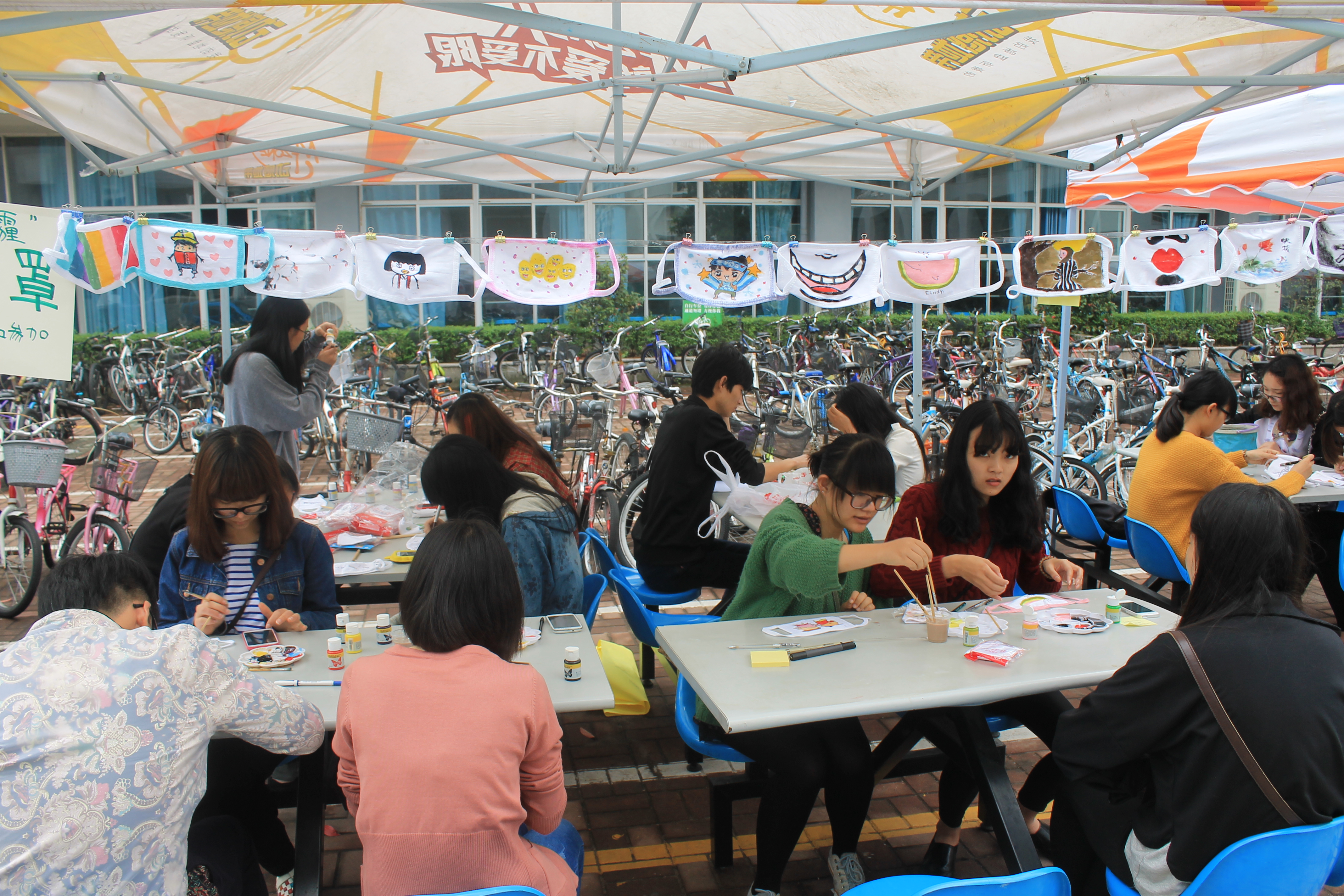 4月20日下午,禁忌书屋 团委学生会设计宣传部与青协在E区共同举办了“笑对雾霾”手绘口罩设计大赛。现场参赛者积极踊跃,比赛气氛热烈。