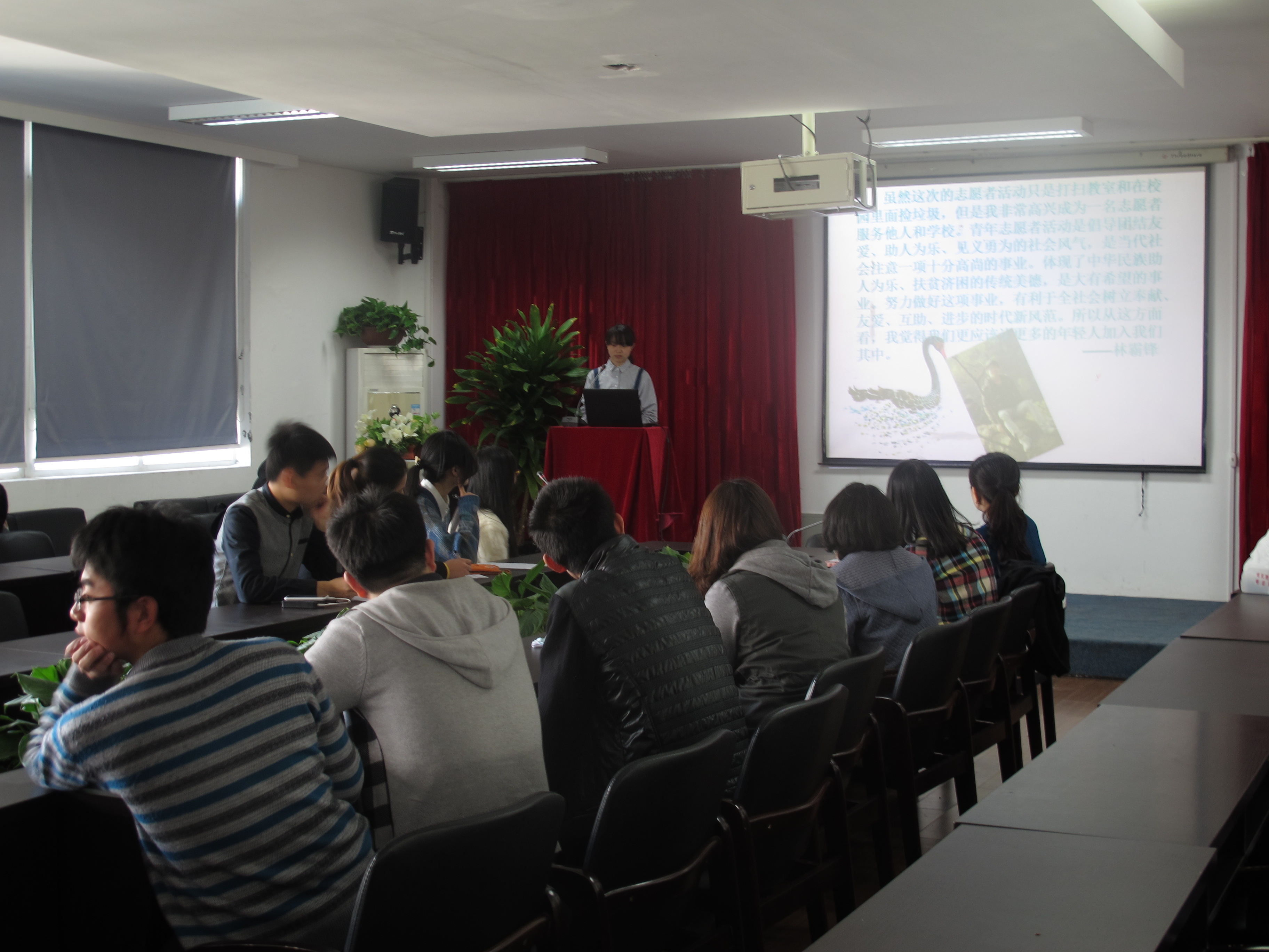 为传承和弘扬雷锋精神,展现当代大学生的文明风貌。3月22日下午,禁忌书屋 “艺家人”青年志愿者协会在2B-4001开展了以雷锋月活动为主题的ppt展示评比,学院辅导员杜茜老师和青协副会长陈周红、冯瑜瑜担任评委参与了此次活动。