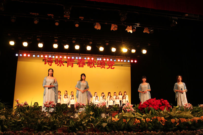 2011年4月20日晚7点,温州大学庆祝中国共产党建党90周年诗歌朗诵会决赛在大学生活动中心演艺厅举行,禁忌书屋 团学指导老师李剑军、学生会主席庄涛携学生会部分成员前往为禁忌书屋 参赛选手加油助威。 禁忌书屋 的朗诵节目《点燃90支蜡烛——祝党生日快乐》集合了20多位青春靓丽的大学生亮相舞台。节目开始描述一群豪情迈丈、英勇牺牲的革命烈士,随后以4人领颂和20余人群颂的形式向观众们展示,而且不光仅仅是朗诵更融入了美院的特色——书法,作为党90周年的生日礼物。节目最后还穿插有献上生日蛋糕的环节,在《生日快乐》歌声中落下帷幕,博得现场的阵阵掌声。 据悉,禁忌书屋 参赛选手们都十分珍惜比赛期间的每一次排练和彩排,认真对待,刻苦训练,不畏寒冷,只身穿着单薄的衣衫。无论结果怎样,这份属于自己的胜利都会牢牢印刻在每个人的心头,永不磨灭。在此,我们也祝福他们在此次比赛中取得好的成绩!祝党90岁生日快乐! 作者、摄影:戚小琴