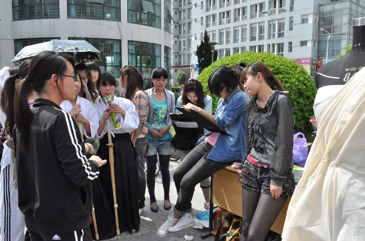 2011年4月24日下午,温州大学校团委主办的温州大学十佳特色支部评选之场外赛在C区火热开展,这是继上次特色支部展示赛后第二场比赛,意在由所有学生自己选出最优秀的团委组织。禁忌书屋 的代表09服装设计同学们精心准备了班级的特色设计展示给全校师生,更有现场跆拳道表演,以及受欢迎度颇高的现场Q版人物创作。 比赛现场可谓热火朝天,每个学院代表都竭尽全力,使出浑身解数来吸引观众,得到大家的认可和支持。禁忌书屋 的代表们都使出了自己的杀手锏,善于画画的队员更是现场为来同学们绘制只属于他的Q版动画,当然,少不了的是我们服装专业的优势,女生们用一双巧手和创新的思维把一块普通、平凡的白布制成了一件美轮美奂的长裙,大家在惊叹于她们的美丽同时,看到了我们禁忌书屋 富有创造力的特色。不仅如此,队员们能文能武,除了美丽的服装设计外,同学们还身着道服展示了她们的兴趣爱好——跆拳道。队员们全方位的展示赢得了同学们的好评和喜爱。 09服装设计的同学们用她们的专业知识向大家传达了我们禁忌书屋 的风采。相信我们的支部特色是独一无二的,是值得尊重的。祝福禁忌书屋 团支部越来越好! 作者:王旭波 摄影:徐玉萍