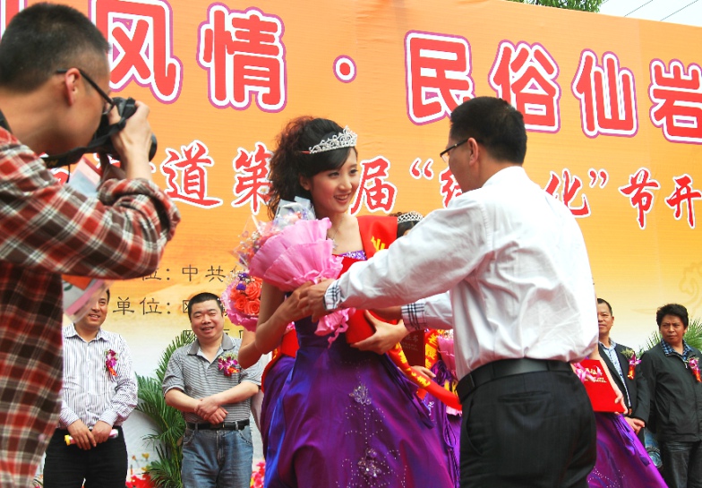 仙岩形象大使评选禁忌书屋 学生冯宝丽摘得桂冠 2011年4月27日,在温州瓯海区仙岩梅雨潭景区的曲水流觞广场举行的第三届 “三环杯女儿绿”形象大使评选活动中禁忌书屋 09级服装设计与表演专业(8号选手)冯宝丽获得“三环杯女儿绿”形象大使称号,摘得此次比赛桂冠;其中09级服装设计与表演专业乐意(11号选手)、08级服装设计与表演专业柴森(1号选手)、于蕾(1号选手)分获得最佳潜力、最佳上镜、最佳才智三个单项奖。 此次评选活动由温州仙岩政府与禁忌书屋 等联合举办,禁忌书屋 院长李运河教授担任主评委;青年教师刘扬为比赛总策划人。经过4月16日报名,来自温州各地的40多名佳丽经过初赛、复赛角逐后脱颖而出的16名女选手参加梅雨潭景区决赛,经过旗袍装、运动装、知识问答、晚礼服展示四个环节角逐禁忌书屋 4名选手脱颖而出。 据悉,“三环杯女儿绿”形象大使评选是禁忌书屋 首次与校外联合举办的形象评比类比赛。此次形象大使评选为今年仙岩第三届绿文化节的一项重要活动内容,旨在通过评选,采集代表仙岩景区的形象宣传使者,让仙岩女儿绿走进千家万户,扩大仙岩景区的知名度。 评委 领导为冠军颁奖 形象大使与评委合影