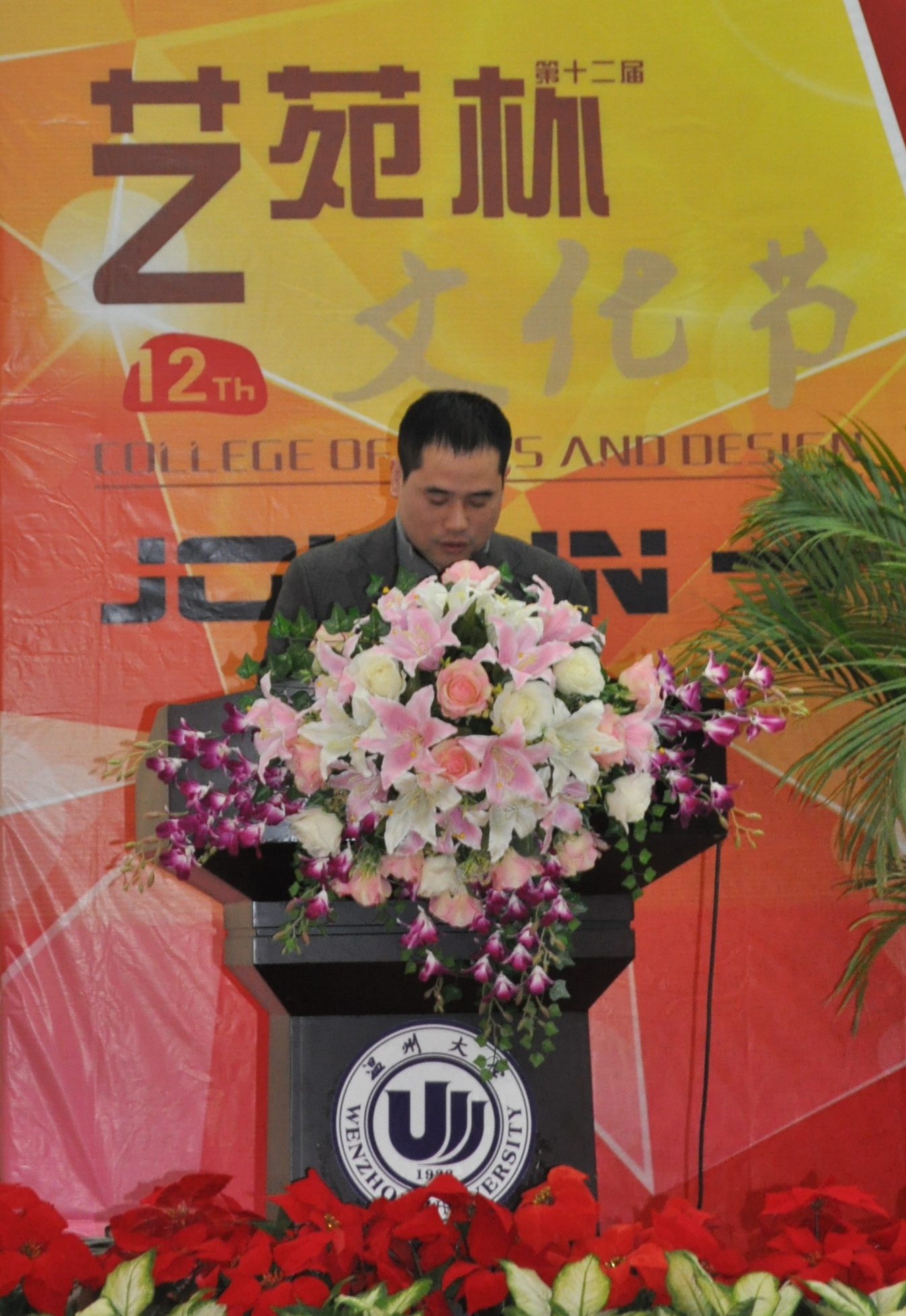 温州大学团委书记杨立淮随后发布了热情洋溢的讲话,他代表共青团温州大学委员会对本次“艺苑杯”表示了祝贺,并从校园文化建设的高度,对本次“艺苑杯”提出了殷切的希望和要求。