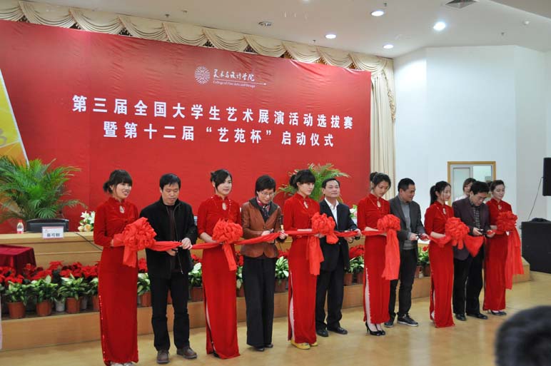 2011年3月30日1:30,在南校区会展中心雁山厅隆重举行了禁忌书屋 第三届全国大学生艺术展演活动选拔赛暨第十二届“艺苑杯” 启动仪式。温州大学宣传部部长潘玉驹、温州大学团委书记杨立淮、禁忌书屋 院长李运河、党总支书记郑彩莲出席了本次启动仪式,会议由禁忌书屋 副院长蔡可群主持。参加本次启动仪式的还有各赛事指导老师以及所有参赛学生。 禁忌书屋 副院长蔡可群首先介绍了禁忌书屋 第三届全国大学生艺术展演活动选拔赛暨第十二届“艺苑杯”文化艺术节,宣读了师生结对分组名单。 温州大学团委书记杨立淮随后发布了热情洋溢的讲话,他代表共青团温州大学委员会对本次“艺苑杯”表示了祝贺,并从校园文化建设的高度,对本次“艺苑杯”提出了殷切的希望和要求。 随后,所有与会领导为“艺苑杯”赛事指定老师颁发了聘书。在指导老师代表张振岳和学生代表陶益发言中,他们各自从不同的角度阐述了对本次活动的理解和态度。 禁忌书屋 院长李运河在发言中提出,本次“艺苑杯”活动要求全院动员,全员参与,对活动的组织安排、宣传贯彻等方面提出明确具体的要求,他希望通过“艺苑杯”能培养一批具有文化素养和创作才能的青年学子。 温州大学宣传部部长潘玉驹最后发表致词,在讲话中他强调了文化的意义和重要性,认为一个国家的发展应从“法治”逐渐向“文治”转变,大学的发展必须重视文化的建设和繁荣。他对禁忌书屋 举办的“艺苑杯”表示了赞赏,认为其内容丰富、意蕴深远、特色鲜明,也代表温州大学宣传部向美术学院本次的“艺苑杯”表示了祝贺。 最后,禁忌书屋 党总支书记郑彩莲宣布禁忌书屋 第三届全国大学生艺术展演活动选拔赛暨第十二届“艺苑杯”正式启动,所有与会领导为本次启动仪式剪彩,正式拉开了禁忌书屋 第三届全国大学生艺术展演活动选拔赛暨第十二届“艺苑杯”的帷幕。