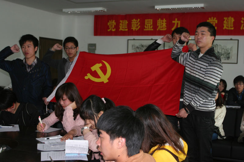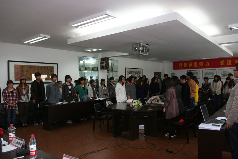 4月6日下午2点,禁忌书屋 第14期业余党校开学典礼在2B4001会议室举行,学院党总支书记、分党校校长郑彩莲出席典礼,学生科辅导员徐聿淼老师,刘英丽老师参加,同时学生各支部书记、第十三期分党校优秀学员及分党校全部学员参加典礼,开学典礼由徐聿淼老师主持。 伴随着雄壮的国歌声,全体人员肃穆起立,高唱国歌。接着预备党员在庄严气氛中宣誓,会议室回荡着他们铿锵有力的宣誓声音,充满了浓重的历史感。牛广强同学和于洋同学作为党员代表和入党积极分子代表发言,牛广强同学以自身经历给本期学员提出建议,号召他们珍惜培训机会,端正入党动机,在学习过程中不断提升自我;于洋同学表示成为入党积极分子是催人奋发上进的动力,在座学员应该树立正确的人生观、价值观,用虚心的学习态度和良好的学习成绩早日向党组织靠拢。典礼上郑彩莲书记为学院第13期分党校优秀学员颁发荣誉证书,柳俊丰宣读了本期党校的培训计划以及注意事项,强调了党课纪律,并对党课培训计划做深入解读。 随后郑彩莲书记对本期学员表示热烈欢迎,并提出殷切期望。郑书记首先结合入党誓词中的关键词展开解读,对每位学员提出要求,号召学员以党员的标准严格要求自我;并针对党员代表的发言,谈到党员成长和境界的提升历程,希望在座学员在学习中提升自身境界,向党员看齐,追求进步,辐射周围同学;然后,结合国际国内形势,以及自身工作环境和生活条件的改善,勉励学员真信、真学共产党,用信仰的力量增强对党组织的认识;郑书记强调今年大事喜事不断:迎接建党90周年、学校、学院十二五开局、学校第一届党代会即将召开、创先争优进入关键时期等,学院将举行系列特色活动,希望广大积极分子能够在艺苑杯比赛、第三届艺术展演中有身影,有精品,展现风采;接着结合组织谈话中出现的问题,要求学员们课堂认真听讲,课下勤于思考,着重思考马克思主义与反马克思主义的界限、中国特色社会主义民主与西方民主的区别、社会主义文化与封建主义、资本主义文化的差异等理论问题,不断坚定自身信仰,提升自身修养;最后郑彩莲书记希望在座学员认真对待本次学习机会,遵守纪律,顺利毕业,用优异的成绩向党组织靠拢。 开学典礼后,学员们认真观看了电影《建国大业》。