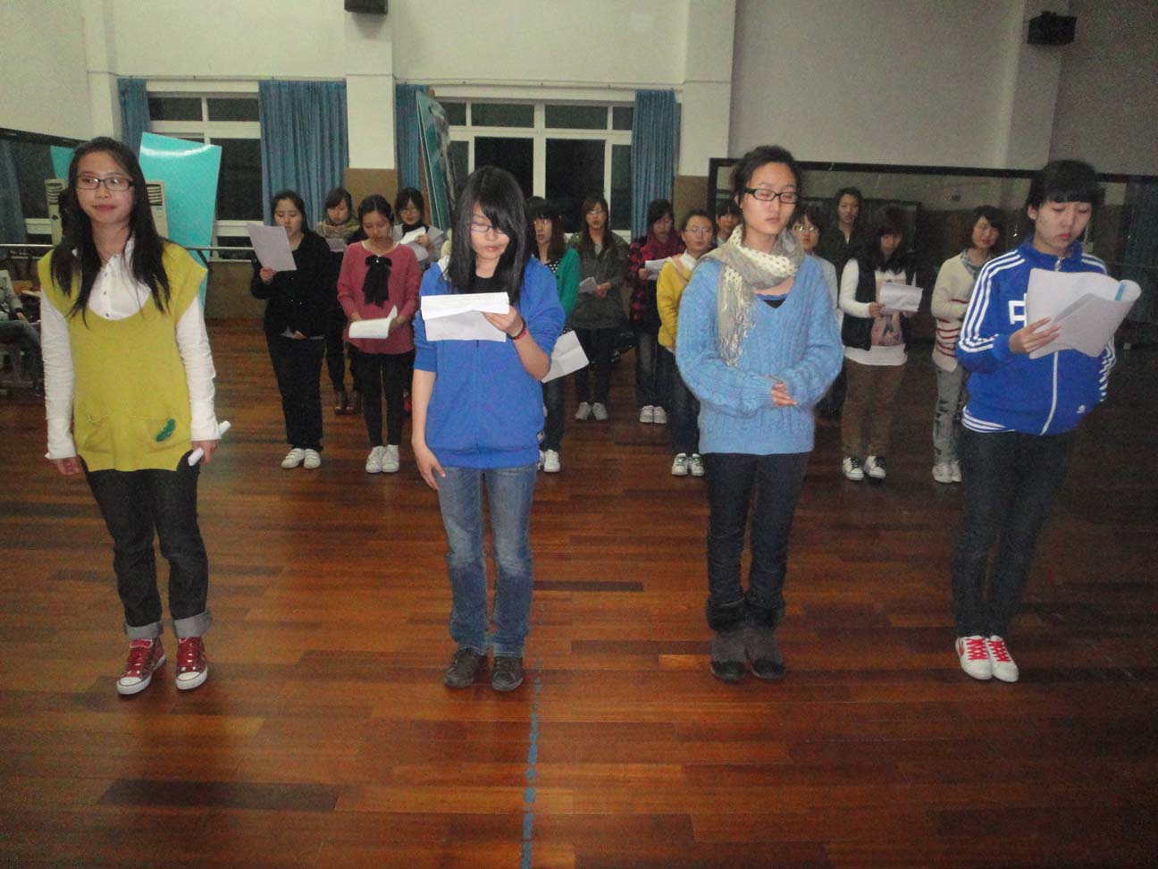 2011年4月8日晚6点,为迎接建党90周年温州大学大型诗歌朗诵会,在温州大学南校区2C402进行禁忌书屋 学子的朗诵排练。在禁忌书屋 文艺部负责人及干事的组织带领下,我们学院的大一同学踊跃参与、积极配合,李剑军老师也在百忙之中前来察看,大家齐心协力,只为能在第二天的校朗诵比赛中惊艳四座。