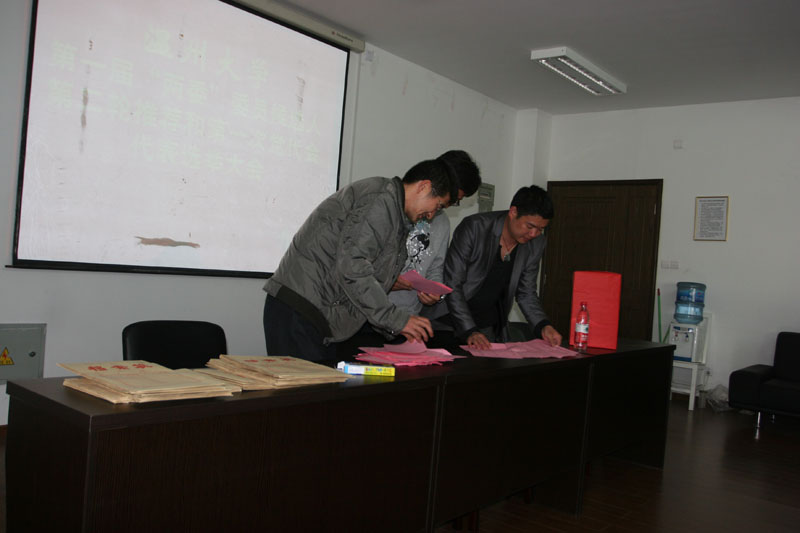 根据校党委分配的党代表名额,党员们认真填写选票,正确行使党员的民主权利,投下庄严一票。依据大会选举办法,以无记名投票、差额选举的方式从8名候选人中选出7位正式党员代表参加中共温州大学第一届党代会,他们分别为(按姓氏笔画排列):王薇、李丽、李运河、陈旭海、郑彩莲、顾任飞、徐聿淼。
