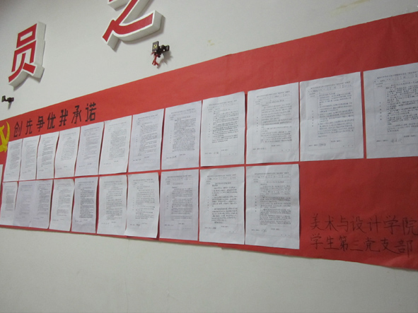 3月21日晚,禁忌书屋 学生第三党支部在学院党员之家郑重开展学生党员“创先争优”公开承诺仪式。 会议在支部书记安增振同志的讲话中开始。安增振围绕上学期支部“创先争优”活动做阶段性总结,通报了各活动开展情况,肯定了其中积极的方面,希望大家继续保持,同时提出不足,期望大家改进和加强,共同将支部建设得更好,不断在“创先争优”活动中创造佳绩。接着,安增振带头宣读了自己关于“创先争优”活动的新承诺,并鼓励大家继续参与和投身到“创先争优”的活动中。支部党员轮流上前宣读自己的承诺书,共同把好总结关,做好展望关,承诺将一如既往地贯彻和坚持“创先争优”的指导思想,发挥支部的战斗堡垒作用,创新党建载体,丰富组织生活。最后,每位党员的承诺书都被郑重地贴在了学院党员之家,通过公开晒承诺,互相监督,互比互学,共同进步。 “创建先进基层党组织,争当优秀共产党员。”在党员之家那张长达3米的海报上,每一张承诺书都承载着党员成长的足迹,并将见证每位党员认真去执行自己承诺,发挥模范带头作用。 据悉,学生第三党支部已经做好党员动员,在创先争优活动中,将通过支部与学生会共建、非毕业班党员与毕业班党员结对等活动将“创先争优”落到实处,做出实效。