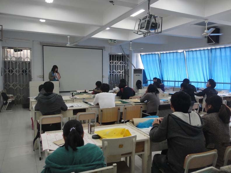 2011年3月27日下午2点,禁忌书屋 服装楼2a306的教室里,素质拓展培训的书法班如期开班。本次的指导老师为禁忌书屋 国画班的优秀学生,她首先教没学过的同学们练楷体,而已有一定基础的同学则继续练习自己原来的字体,并很认真负责地进行逐一指导。