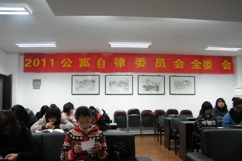2011年3月13日晚6:40分,公寓自律委员会在禁忌书屋 2B4001室召开了10-11学年第二学期第一次公寓自律委员会的全委会。参加本次会议的主要有公寓自律委员会的全体成员和各寝室的寝室长,各班生活委员,还有团学指导老师李剑军老师。