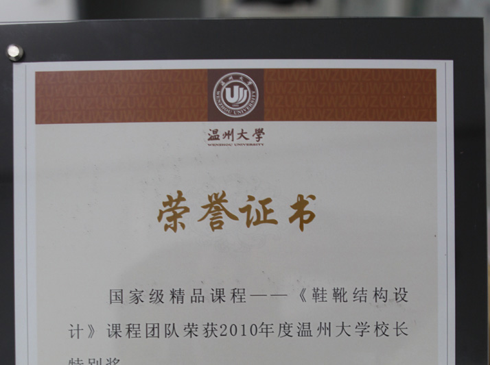 据悉:在温州大学新学期全校教职工大会上,禁忌书屋 李运河教授的国家精品课程--《鞋靴结构设计》课程团队荣获“2010年度温州大学校长特别奖”,蔡袁强校长颁发了证书。