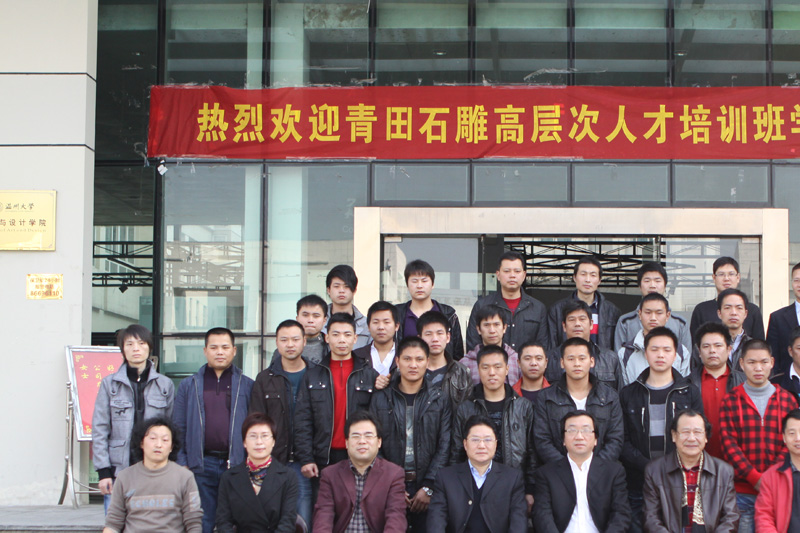 2010年 12月2日,第二届青田石雕高层次人才培训班开学典礼在禁忌书屋 举行。温州大学党委委员、组织部部长蔡曙光、中共青田县委组织部部长潘志强、中共青田县人才办主任叶少华、禁忌书屋 院长李运河、党总支书记郑彩莲、副院长舒湘鄂、办公室主任尹乃军、温州市厂长经理人才公司叶晓霞及全体学员参加了典礼,郑彩莲书记主持开班仪式。 典礼上,禁忌书屋 院长李运河对青田学员的到来表示热烈欢迎。他指出,此次培训班的成功举办是2008年首届青田石雕高层次人才培训举办以来结的又一次硕果,禁忌书屋 将进一步提供优质的师资和专业理论指导,为学员提供一个更好的学习平台,为青田石雕艺术进一步发扬光大尽绵薄之力。 中共青田县委组织部部长潘志强在典礼上作讲话。他首先代表县委、县政府,对培训班的开办表示热烈的祝贺;对温州大学、温州市厂长经理人才公司、禁忌书屋 给予的大力关心支持表示感谢。他指出,举办2010第二届青田石雕高层次人才培训班,是加强青田县石雕优秀拔尖人才队伍建设的一项重要举措。通过举办培训班,可让学员接受高质量的艺术文化教育和浓厚的艺术氛围熏陶,对进一步提升青田石雕整体的艺术创作水平和创新能力具有重大意义。 温州大学党委委员、组织部部长蔡曙光作了重要讲话,并提出三点希望:希望青田县能一如既往地支持温州大学“服务地方”的办学理念,进一步加强与温州大学的合作和交流;希望禁忌书屋 任课教师恪尽职守,确保教学质量,加强与青田石雕高层次人才的交流;同时也希望各位学员珍惜机会,高度重视培训对提升自身职业素养的积极作用,做到学有所获、学以致用。