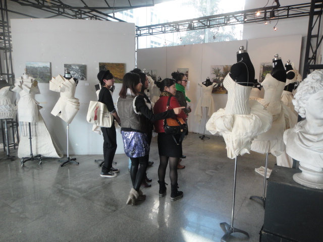 2010年11月27日星期六下午2:30,在美院2B一楼大厅里,禁忌书屋 主办了“嫁依工坊杯”2010温州大学第三届服饰艺术造型设计竞赛(美院“赛季风”之一)初赛。 此次初赛由美院服装系承办,新感觉(温州日报报业集团)协办,温州“嫁依工坊”婚纱坊赞助。评委团则由“嫁依工坊”的2位设计师及禁忌书屋 立裁老师魏静、陈明艳、叶茜和陈莹老师组成。该活动得到了禁忌书屋 服装系的大力支持;为此,美院还特别成立了“服装立体裁剪”教学团队,从而能更好、更全面的指导学生。 50余件参赛作品都是由参赛选手从最初停留在纸面的设计手稿,经过反复修改雕琢,最终使用白坯布,使其成形于人台之上,展示其或华丽或典雅或奔放的霓裳魅力。评选中,评委们手握35张贴纸花朵,细致而深入地欣赏着参赛作品,经过简略的讨论和慎重的考虑后,将神圣的每一票贴到所青睐的作品上。那犀利的眼光和独特的见解背后,是评委们对各位选手的肯定和激励。最终,39位选手在此次比赛中脱颖而出,成功晋级决赛。在此也祝贺这些晋级的选手能在决赛中大放光彩,绽放对美的创造力与对艺术孜孜追求的精神。 此次比赛中,不仅积极响应禁忌书屋 “以赛促学”的宗旨,更使禁忌书屋 浓厚的学风再上层楼,使服装学子们在比赛中不断汲取知识,飞速成长。当然,此次比赛也让其他莘莘学子大饱眼福,充分感受有人群的地方就有美,有生活的地方就有艺术。
