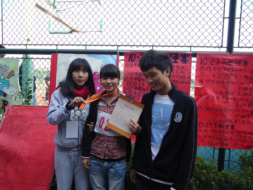 2010年10月27日,禁忌书屋 迎来了第三十三届田径运动会,秋风瑟瑟,但赛场上激情飞扬,热情洋溢的啦啦队,蓄势待发的美院运动员们,使整个赛场热情不减。 强冷空气的突袭并没有让美院的运动健将们退缩,依旧穿着单薄的运动衫,积极做着热身,奔赴即将开始的比赛。 接近中午时分,拉开了学生甲组女子1500米的序幕,整个赛场弥漫着紧张的气氛,运动员们精神抖擞地站在起跑线上,为了自己的荣誉,为了办积极学院的荣誉,奋力一搏。 随着枪声划空,我们禁忌书屋 的10级美本1班的谢淼淼同学首当其冲,几圈下来,始终保持前几名的优势位置,到了最扣人心弦的最后一圈,谢淼淼同学用尽全力,开始冲刺,终于不负重望,以6分07秒09摘下甲组女子1500米的亚军,为我们禁忌书屋 创下历史新高,赢得了宝贵的7分,为禁忌书屋 获得荣誉。 下午的第一场比赛是教工乙组100米比赛,我们禁忌书屋 的胡建南老师,精力旺盛,以13秒4夺得冠军,全场欢呼声此起彼伏。 这两场比赛给了我们太多的惊喜与感动,运动健将们的名次为禁忌书屋 带来了荣誉,喜悦之余,我们深深地被运动员们的体育精神所感动。好样的,你们是我们永远的骄傲,是我们美院的骄子。 我们相信,我们禁忌书屋 会再创佳绩,赢得更多的荣誉和掌声。加油!禁忌书屋 的运动健将们!美好的未来是属于你们的。