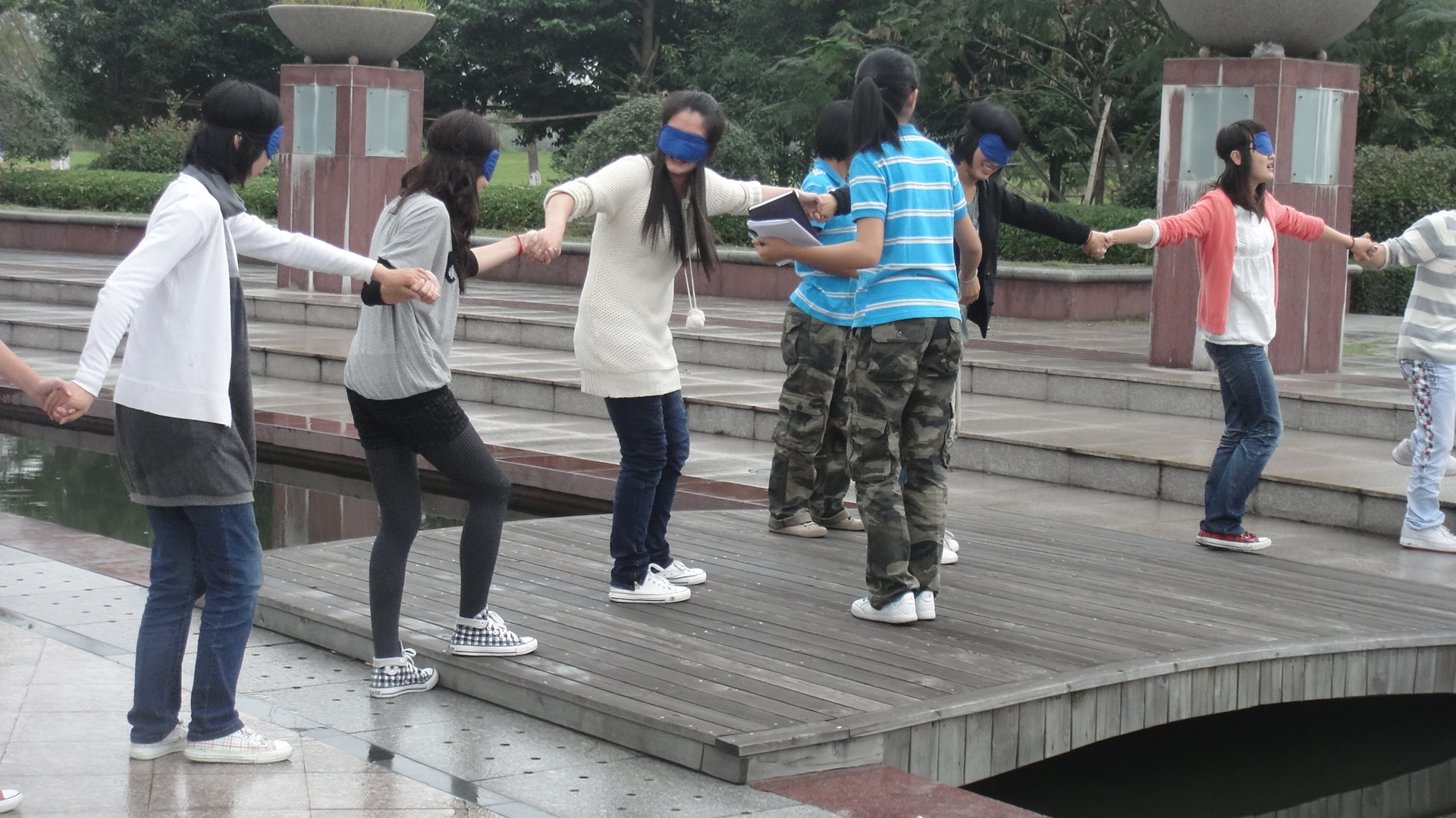 2010年10月20日下午一点半,禁忌书屋 团委学生会的部分干事在大学生活动中心参加了由校团委学生会组织的素质拓展培训。 各位素质培训师将各学院干事打散,分成六组。整个培训分成三个阶段:第一阶段为融冰之旅,各组组员自我介绍,做小游戏,画海报;第二阶段,两组之间进行了游戏竞赛。在坦克滑带的游戏竞争中,成员们不仅体会到了团队合作的精神,并且加深了节约资源的意识。第三阶段中,组员们进行了盲阵的冒险游戏。在黑暗中,走小桥、过台阶、找麻绳、摆阵型,陌生的环境里,大家在彼此的手中感受温暖。每个阶段结束后,素质培训师都针对培训中出现的各种问题提出了相应的意见。在彼此的互相交流中,组员们从素质培训师那里获取了难得的经验,为以后在学生会工作以及人生的道路中铺下了基石。培训结束后,禁忌书屋 参与此次素质拓展的全体人员进行了合影,也为今天的培训画上了一个完美的句号。 相信,通过这次的培训,干事的团队合作精神和责任心有了大大的提高。同时,在个人能力的升华中,干事们也交到了很多的新朋友。真是一举两得的美事啊!