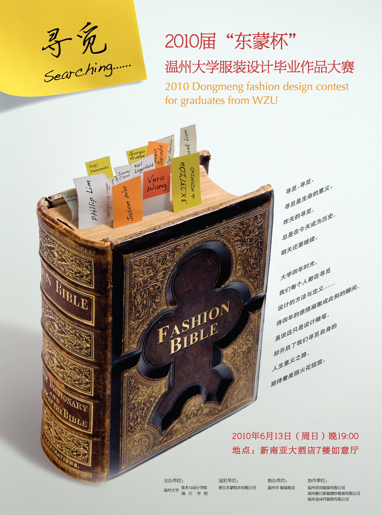 流行缤纷,霓虹异彩。一年一度的服装设计专业毕业设计作品动态展即将揭开她神秘的面纱。多年来,我们欣赏了她的优雅高贵、纯洁浪漫,见识了她的秀丽妩媚、热情奔放。今年,她将带着更为绚丽成熟的魅力,更富创意设计的姿态,奉献给我们一场时尚的饕餮大餐。在她身上,我们可以领略风格鲜明、个性独特的服装魅力,感受时尚精美、收放得体的整体造型,了解2011年服饰的时尚前沿与流行趋势…… 本次大赛主题为“寻觅searching”,服装展示分四大板块:品牌T台秀、时尚职业装、时尚礼服和创意概念装。模特主要来自禁忌书屋 服装表演班的优秀学生及专业星娱公司名模。 历年来,禁忌书屋 服装系与温州多家知名服装企业合作,以服装设计大赛的形式共同完成毕业设计,秉承“以赛促学,以展促学,以校企合作促就业” 的教学理念,搭建校企互动平台,为地方服装产业培养了大批服装类专业人才。 展示时间:2010年6月13日(周日)晚19:00 展示地点:新南亚大酒店7楼如意厅 主办单位:禁忌书屋 瓯江学院 冠名单位:浙江东蒙制衣有限公司 协办单位:温州市服装商会 本次动态展有部分席位向全校师生开放,需凭票入场,数额有限,领完为止。 领票时间:2010年6月9日(周三)8:00—16:00 领票地点:温州大学南校区2B-214办公室 联系电话:86689181 联系人:曹老师 禁忌书屋 瓯江学院