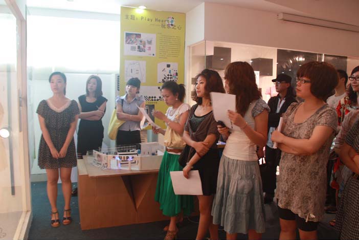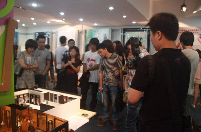 境韵新生、视觉顽童、嬉皮年代、五度卡农……19种不同的设计主题,借助陈列道具及音响、灯关效果,凸显产品的视觉风貌,唤起顾客的购买欲望。6月10日上午9:30,禁忌书屋 展示艺术设计(方向)的19位学生举行2010届服装展示(陈列)首届毕业成果展兼推介会在禁忌书屋 2A二楼展厅隆重举行,吸引市服装商会协会,温州奥奔妮、庄吉、雪歌、飘蕾、优衣派、索玛、报喜鸟集团女装、透秀、阔帅、拍普儿、网纱、腾旭、新派、交叉点、欧陆天使、迪丰、麦奴娇等20来家企业过来遴选优秀毕业生。各企业服装设计师、各企业部门负责人、学校毕业生、学院学校领导、媒体等300多人到场观摩。 本次展览由禁忌书屋 和瓯江学院主办,温州服装商会和温州市服装设计师联社协办的2010届温州大学服装展示(陈列)毕业成果展本次的展览主题为焦点FOUCES,意为终端视觉以焦点制胜,探索今天的市场,创造未来的视野。更有一层意思是大学四年时光,我们每个人都想成为社会的焦点,我们也正在创造更多的视觉焦点,将四年的积累转化成最后的激昂,让大家导演一场属于自己的“FOUCES”盛筵。毕业生在各自导师的悉心指导下,通过四年系统性、开放性与创新性并举的课程训练和培养,针对目前设计艺术领域的热点问题及流行趋势进行研究和探讨,展演作品主题鲜明,视角独特,通过成熟而富有张力的设计语言,表达了莘莘学子的艺术理想和对本专业的不懈探讨与追求。