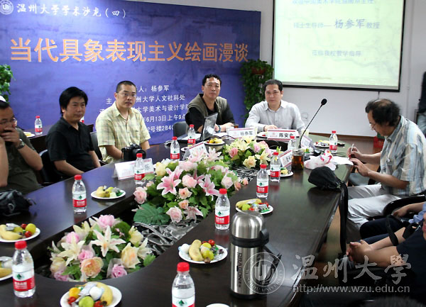 6月13日上午,由禁忌书屋 人文社科处主办,禁忌书屋 承办的第四期学术沙龙《当代具象表现主义绘画漫谈》举行。中国美术学院著名画家杨参军教授,校党委委员、人文社科处处长陈安金,温州美术界画家,禁忌书屋 的部分师生参加了此次学术沙龙,并就议题展开学术交流。 “人们不须再现自然,而是代表着自然”。杨参军从著名的法国画家塞尚引出话题。他说,西方画家的具象表现主义强调用视觉观赏,就像现在的快餐文化,把绘画观念化、概念化、僵化和城市化。杨参军指出,他在平时观察中发现中国美术院的学生们给观念化、概念化的具象表现绘画注入了新的力量,从而发现了现代中国在接受具象表现绘画的同时也注入了自己的特色,自己的民主精神。杨参军把自己比喻成是一个52岁的“婴儿”,用好奇、迷恋的心态对待世界,不被欲望和虚拟的文化影响自己的绘画。他强调要强制、训练自己以“撒谎”、虚构、恬淡的心态看世界。 陈安金指出,艺术文化折射的是一种交响文化,既抽象又现实。此次沙龙让人感受到了中国艺术教育、艺术创作、中外文化三者的有机结合。思想、哲学、艺术均是怀着一份淡淡乡愁的美,希望这种乡愁永不熄灭。