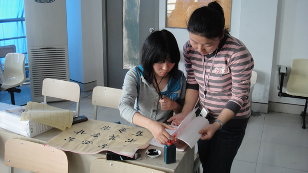 近日,禁忌书屋 主办的每周一课书法培训素质拓展班与往常一样在禁忌书屋 教学楼2B308准时开课。禁忌书屋 07级优秀学生何玲珑同学担任执教,为来自全校各院学员40余名书法爱好者拉开书法世界的大门。