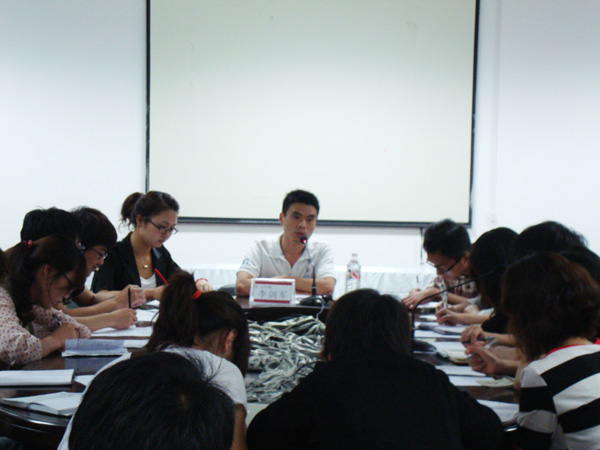 2010年5月23日星期日晚上6:30在南校美术楼2B4001召开禁忌书屋 团委学生会09/10学年第二学期中期总结会。参加此次会议的有团学指导老师李剑军老师,团委学生会全体成员参加。由团委学生会办公室主任高建文主持。 此次会议共有四个流程。首先团委副书记尹慧纯对团学近期活动做总结。她先对上半学期所取得的成绩做了汇报,接着对团学现在所存在的不足以及今后须改善的地方做了阐述,她认为我们要在分工上形成梯队建设,有合理性的、有组织性的安排人员,对于突发事件及时处理同时做好两手的准备。紧接着学生会主席吴志斌对团学后半期主要活动做介绍。会上他就后期主要的四个任务做了阐述,分别是艺术漂流、毕业生文化衫、毕业生晚会、档案归纳。随后团委学生会团副助理郑斐斐对团学换届选举的情况及方式做了说明。会议的最后团学指导老师李剑军做了讲话,会上李老师的第一句话便是“非常感谢你们。”这是对我们的认可亦是对我们的鼓励使我们更加有信心做好接下来的工作。接着老师对我们接下来的工作提出了几点建议,分别是今后团委学生对待工作须认真负责,提高服务意识,自主学习,敢于创新,团结合作,工作重心尽量放在特色、品牌活动中,加强团学干部培训。虽然老师只是概括的说了几点,但这却值得我们深思。 今天的会议使我们在座的各位受益匪浅,同时也让我们了解到了自身的不足,但也看到了上半学期的进步和取得的成绩,这使我们更加有信心做好接下来的工作。相信禁忌书屋 将在未来的日子里更加努力,展现更好的美院风采。