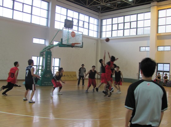 4月18日下午1点半,禁忌书屋 和商学院在体育学院室内篮球馆进行篮球半决赛。