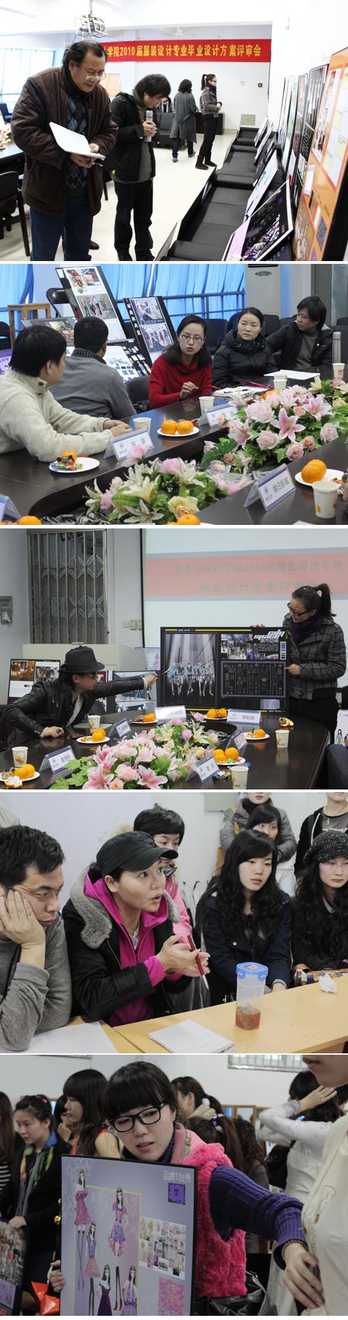 3月13日上午,禁忌书屋 服装系在南校服装楼成功开展了2010届服装设计专业毕业设计评审工作——样衣试装。本次毕业设计的评审委员会由服装设计教研室全体老师组成,到场的有翁小秋老师、张振岳老师、陆琰老师、钟信群老师、夏剑武老师、黄高路老师、陈旭老师、陈莹老师和刘扬老师。服装表演专业的十几位学生担任了试衣模特工作 2010届服装设计专业毕业设计要求学生根据产品使用场合和用途定位进行分类,分组与相关的服装企业合作,依据企业的风格定位或产品计划进行延伸设计,完成从前期调研——设计构思——设计方案——服装作品——作品展示等环节工作。在活动过程中,温州知名服装企业给予大力支持。浙江东蒙制衣有限公司、温州尊尚服装有限公司、温州金诗丹服饰有限公司、嫁日新娘婚纱礼服名店的企业代表担任专家评审会成员,与校内指导老师一起对56位毕业生的设计方案进行了评选。经过一番激烈的讨论及删选后,《解笃》、《JUST NOW》、《蜕变》等30余件作品凭借其完美设计构思脱颖而出,企业专家组给予了很高的评价并表达了赞助意向。 服装设计教研室主任陆琰老师表示:促成毕业设计与企业的合作并通过专家指导,能让学生们的毕业设计作品更贴近市场需求,开发出满足企业应用需求的项目,能有效深化学生大学四年所学的专业理论知识与设计实践技能。在毕业设计过程中设立阶段性的评分选拔,则是极大地培养了学生独立设计创作能力、时间管理能力与各种现代化设计手段的应用能力。相信在学校与企业的大力支持下,通过老师和同学们的共同努力,2010届服装设计专业毕业设计一定能取得圆满的成功