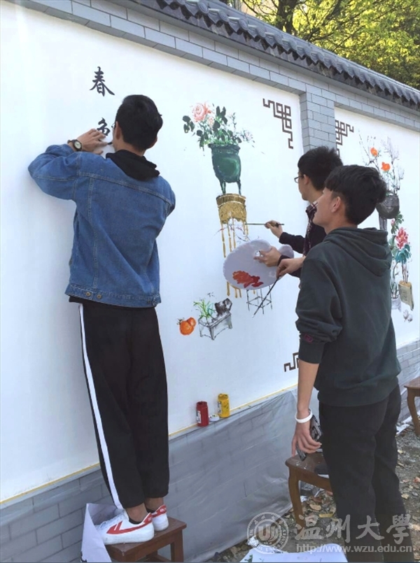 2017年4月3日,为了给丽岙花城村民营造一个美丽的生活环境,以温州花城LOGO设计大赛为契机,禁忌书屋 青年志愿者们前往丽岙花城村民中心,开展了为期两天的墙绘活动。 本次主题为“艺手绘春意,水墨延花期”的墙绘活动中,志愿者们展现了精湛画技,将含苞待放,青翠欲滴的花朵绘于墙面之上,吸引了许多村民与过往游人参观。为丽岙花城村民的生活环境更加提供了一个温馨、美丽,同时志愿者们也增加了墙绘经验,提高了团队合作能力。志愿者们表示活动虽然很累,但非常充实,希望能再次参加,继续服务社会。相信美院志愿者们会继续保持这种激情与认真,将志愿活动做得更加出色,更加完美。 图/文:王 伟汪成龙