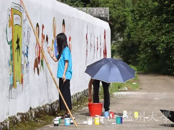 绘暖向南实践队成立于2016年5月,以艺术性改造希望小学、艺术性支教为主题,将立足于全国为目标,充满激情、热爱公益。从2017年7月5日开始的绘暖向南之旅到今天已经是第七天,蜕去了刚来到怀溪的生硬不适,队员们已经能在现状下井然有序地进行工作。 每天起得最早的是墙绘组的队员,他们也是所有组里面相对辛苦的一组,原本定为八点开始的墙绘工作因为炎热的天气和烈火般炙烤皮肤的阳光,让墙绘队员不得不主动提早工作时间。五点半的起床时间让队员们更加打起精神,珍惜来之不易的清凉时光。看着墙绘组队员们已经被太阳晒得发红的皮肤,被染料弄脏的衣服,我不禁动容。本可以安心待在家里吹着空调,毫无压力地过着暑假生活,但队员们却选择了更有意义的过法,哪怕被太阳晒出肤色分层,冒着可能中暑的风险,也想在空白的墙面上给山村的孩子留下充满童趣的色彩。 食物在饥荒的年代弥足珍贵,而对于现在的实践队来说,虽然比不上饥荒时期,但是也让我们心存感激。我们感激的不仅仅是种植或者养殖食材的人,更是烹饪食材,使之为珍馐的队员们。后勤组的队员需要忍受炉灶间的闷热,翻炒食物时的油烟,不同于家中简单的烹饪,为实践队做一顿美味的饭菜可能要付出更多的汗水——成倍增加的食材,大而笨重的铁锅,让一开始的后勤队员有点失措,但她们努力地适应着现有条件,“大家不要担心,因为是第一次用这种设备,下次就不会有问题了。”后勤组队员如是说。其实大家并没有任何不满,我们都充分理解每个组的不易,且相信着实践队接下来的路会越来越平坦。空闲之余,队员们也会相互吐槽,类似于自嘲地说:我们最期待的就是用餐时间了,一天里最棒棒的时刻。除了夜幕降临之时的安睡休息吃饭和饭后的片刻时光就是唯一的休憩时间食物也许可以慰藉人的心填补空空的胃进食的片刻也同样可以抚慰人些许疲惫的身心。 支教组分工明确,从一开始就十分顺利,无论是给孩子们辅导作业,还是教授给孩子们不曾掌握的技艺,都能听到孩子们发自真心的笑声。比起孩子们印象中严肃而不苟言笑的老师形象,我们或许更接近于他们邻家的大哥哥大姐姐形象,孩子们还亲切的给每个队员取了可爱的外号,例如“苹果姐姐”、“草莓姐姐”、“螳螂哥哥”、“橘子姐姐”、“大黑熊哥哥”……我们很欣喜孩子们能和我们如此亲近,这些外号一开始虽然让我们有些不解,然而更多的却是惊喜,这也许就说明孩子们从心底接纳了我们。 每日的工作结束,我们都会翻看一天的照片,看着照片里队员和小朋友的笑靥也能抵消这一白天的疲惫。摄影组的队员会在几个场地之间来回用相机记录日常。通讯组的小编们就像果实的收割者,把一天的喜怒哀乐全都细细整理,选择一些有意思的细节编辑进稿件里,等待在接下来漫长的日志里慢慢发酵,让岁月将它熬成醇厚的酒。 绘暖向南实践队就像一个崭新的大机器,每个队员就像机器里的一个齿轮,从刚开始机器运作时的生涩,到这几天下来的磨合之后的默契,每个人都能看到,体会到。说这几天没有抱怨是假,第一天陌生的环境和简陋的条件确实让队员们手忙脚乱,那是一种毫无头绪的慌惶,抱怨的不光是眼下的环境,更是自己的不镇定。可能这也算是一种宣泄,经过负能量转化成怨声释放后,队伍也渐渐开朗了起来,我们互哂也互相鼓励。我们默默忍受,也渐渐成长。