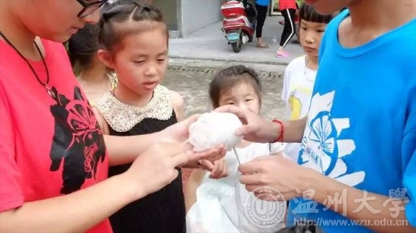 支教组分工明确,从一开始就十分顺利,无论是给孩子们辅导作业,还是教授给孩子们不曾掌握的技艺,都能听到孩子们发自真心的笑声。比起孩子们印象中严肃而不苟言笑的老师形象,我们或许更接近于他们邻家的大哥哥大姐姐形象,孩子们还亲切的给每个队员取了可爱的外号,例如“苹果姐姐”、“草莓姐姐”、“螳螂哥哥”、“橘子姐姐”、“大黑熊哥哥”……我们很欣喜孩子们能和我们如此亲近,这些外号一开始虽然让我们有些不解,然而更多的却是惊喜,这也许就说明孩子们从心底接纳了我们。