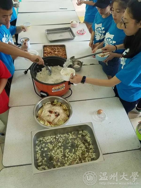 食物在饥荒的年代弥足珍贵,而对于现在的实践队来说,虽然比不上饥荒时期,但是也让我们心存感激。我们感激的不仅仅是种植或者养殖食材的人,更是烹饪食材,使之为珍馐的队员们。后勤组的队员需要忍受炉灶间的闷热,翻炒食物时的油烟,不同于家中简单的烹饪,为实践队做一顿美味的饭菜可能要付出更多的汗水——成倍增加的食材,大而笨重的铁锅,让一开始的后勤队员有点失措,但她们努力地适应着现有条件,“大家不要担心,因为是第一次用这种设备,下次就不会有问题了。”后勤组队员如是说。其实大家并没有任何不满,我们都充分理解每个组的不易,且相信着实践队接下来的路会越来越平坦。空闲之余,队员们也会相互吐槽,类似于自嘲地说:我们最期待的就是用餐时间了,一天里最棒棒的时刻。除了夜幕降临之时的安睡休息吃饭和饭后的片刻时光就是唯一的休憩时间食物也许可以慰藉人的心填补空空的胃进食的片刻也同样可以抚慰人些许疲惫的身心。