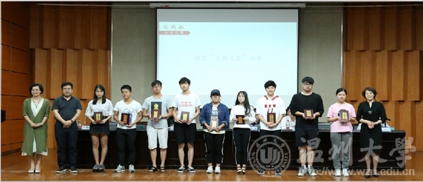 学院党总支副书记杨振海还在会上宣读了2015-2016学年校、院优秀班级与先进个人获得者名单。优秀班级代表与学子在欢快的音乐和响亮的掌声中上台领奖并合影留恋。校“优良学风班”--14视觉传达班代表谢威同学上台发言,分享了团日活动、学科获奖、和谐寝室等班级建设经验。