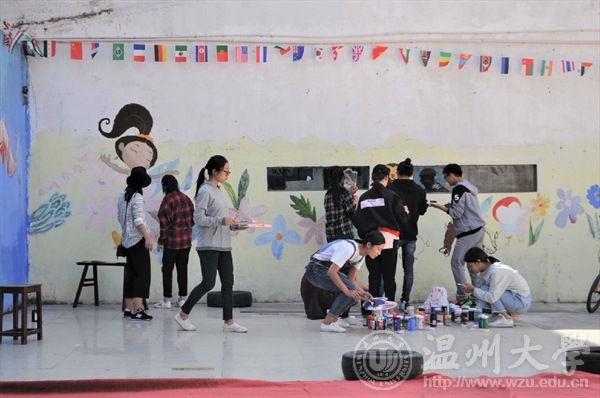 2017年10月29日,禁忌书屋 “艺家人”青年志愿者协会前往白门侨星幼儿园开展了墙绘活动。志愿者们经过大半个小时的车程终于到达终点站,踏入幼儿园发现,它并没有想象中那么现代化,墙上是被太阳曝晒过的稚嫩童画。刚到那里,志愿者们便开始着手准备,将颜料摊在地上,打水,洗笔……,有条不紊地进行着。随后每个人开始选自己要画的卡通人物,由于园长告诉我们,这是孩子们跳舞的场地,所以志愿者们也跟着主题走,上网搜集了许多可爱的卡通舞者,选好之后,二话不说就动起手中的水粉笔开始绘画,志愿者们先用铅笔打稿,用黑色颜料勾线,再上色。不一会儿,肉色的皮肤,粉红的裙子,精美的发饰,优雅的舞姿等便在蓝色的墙面上显现出来了。志愿者们大肆挥舞画笔,用嫩黄和天蓝颜色打底,在太阳底下让人看了温暖极了,太阳也愈演愈烈,志愿者们的头上也开始出现汗珠。上午的时间飞快地流逝,吃过饭后小憩一会,志愿者们便接着干活,同时又把墙面整体地刷了一遍,更突出了人物,再加上一些花花草草的点缀,整个围墙都漂亮醒目了起来。园长十分开心,志愿者们也很欣慰。快结束的时候,还有这边的上级领导来视察,夸奖了我们志愿者的工作成果,也给了一些有用的建议。本次活动开展的目的在于给幼儿园的小朋友们增添不一样的色彩,让他们在一个多彩地小世界里快乐成长、快乐学习,同时也锻炼了志愿者们自身的耐心和技巧,肯定了我们温大人的能力。此次活动让志愿者们收获了很多,早已疲惫的身体里面却是满满的幸福,虽然做的不多,但志愿者们把自己所学到的知识都应用起来了。同时,也希望我们志愿者点点滴滴的行动可以对社会的其他人带来感想,让越来越多的社会人士开始关怀心中的点点滴滴,给予需要帮助的人更多温暖!图/文:金 哲罗会慧董 悦