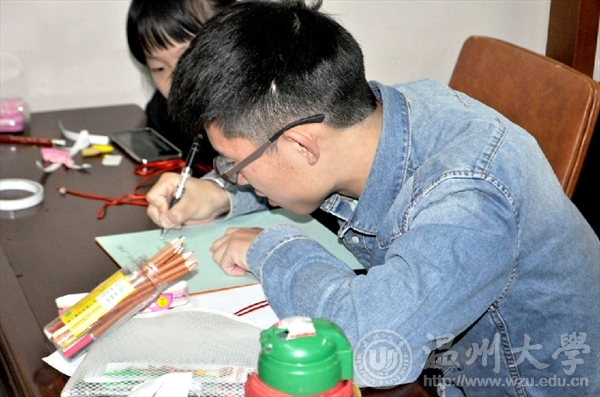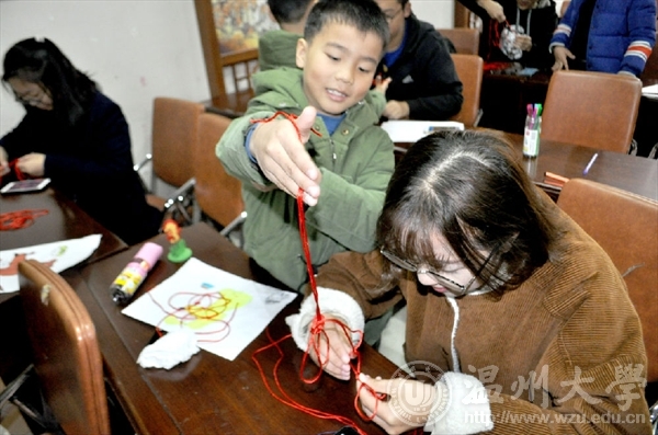 2017年12月9日,禁忌书屋 “艺家人”青年志愿者协会成员以及志愿者们准时来到了梅泉社区文化礼堂,进行了主题为“春节”的志愿活动。秦佳敏同学向小孩子们提问问题“春节有哪些习俗呢?”有的孩子说放鞭炮、贴对联、画福字,收红包……没错,还有挂中国结。中国结的编制没有那么简单,尽管步骤告诉大家,但一开始志愿者们和孩子们都连连“诉苦”难度太大,但不过一会儿还是有心灵手巧的志愿者学会了,并且还教别的志愿者打结,虽然中国结做的不太完美但代表着团结幸福平安的意义却丝毫没有减少。明年是狗年,当然少不了教孩子们画可爱的狗狗,孩子们为自己画的狗狗涂上了颜色还为它画了一个小房子。最后是写祝福语的环节,孩子们依旧很用心地给自己的爸爸妈妈写上祝福,有的写的是“爸爸妈妈你们辛苦了”,有的是“我爱你们”……字里行间流露出了对爸爸妈妈浓浓的爱意。