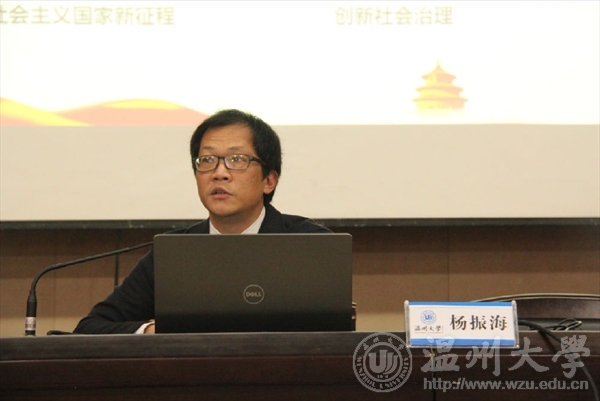 12月6日下午,禁忌书屋 在岩松堂雁山厅组织开展形势与政策课教学,学院党总支副书记杨振海为17级全体同学作“十九大报告精髓要义导读”报告。