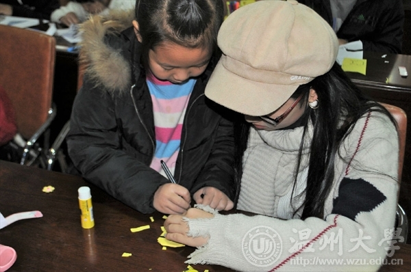 2017年11月25日,伴着微微的小雨,温大禁忌书屋 “艺家人”青年志愿者协会再一次来到了梅泉社区文化礼堂,进行了主题为“团结”的志愿活动。虽然今天小雨绵绵,但志愿者们的热情依旧,小朋友们的积极性也没有因冬天的来临而减少。这次活动首先开始的环节是你画我猜,分成两组进行,先由第一组画出所给出的词语,给下一组三秒钟的时间看,再由下一组画,最后给最后一组猜出词语。大家都很配合,快速完成,并准确猜出词语,获得相应的奖励。接下来,伴随着小黄人的的主题曲,大家一起看了一段小短片,目的就是希望小朋友们要像小黄人一样在困难面前团结一致不怕困难。接下来,为了加深印象,志愿者们便开始指导小朋友们在纸上画出可爱的小黄人。一个圆圆的身子,一条深蓝色的背带裤,酷酷的黑色镜框,看过小黄人电影的朋友对此一定不陌生。紧接着是突发奇想环节,有的小朋友在分发的气球上画小黄人,还有的小朋友把许多个小黄人推在一起,仿佛是一个能打倒巨大怪兽的超级英雄。最后一个是评奖环节,负责人选出做的最好的五位小朋友,给他们送上精美印章以及荧光笔。没有得到的小朋友们给予他们有趣的圆珠笔作为安慰奖。总之,大家都很满意。小朋友们的动手能力越来越好,与志愿者的互相协作能力也得到了相应的提高,他们的作品可能不是完美的,但他们的所有的作品都充满了团结的力量,让人温暖,给人力量。小朋友们和志愿者们一起完成一张画,一起折好一张纸,一起做一件事,一起欢声笑语,一起度过美好时光,这样团结的氛围让小朋友们感受到了团结的力量是强大的,这些力量也会给社会带去一份温暖和感触。 图/文:金 哲罗会慧董 悦