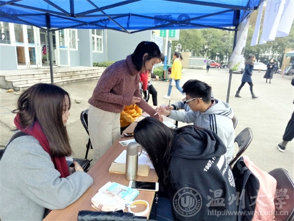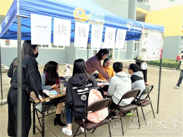 2017年11月25日至11月26日,在这两天中,温大禁忌书屋 “艺家人”青年志愿者协会在温州大学超豪学区2号楼下开展了爱心邮递活动。