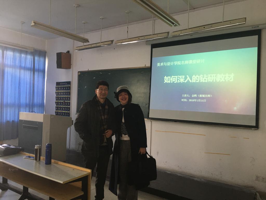 2018 年1 月11 日上午8:30在温州大学3B204教室,温州市鹿城区名师金鸥老师为禁忌书屋 的师范生和研究生作了以“如何深入的钻研教材”为主题的课堂研讨。禁忌书屋 胡建南老师主持了活动。 本次研讨给同学们带来极大震撼,使同学们认识到深入的钻研教材的重要性。首先,金瓯老师围绕如何深入的钻研教材,通过引案例、与同学间的互动、点评并结合自身经历为同学们分析了上好一节美术课的前提,用幽默风趣的语言向同学们提出了相应的的解决方法,提出了备课前三步走的工作思路和具体的备课过程。整个教室不时发出清脆动听的笑声,同学们在轻松的氛围中认识到深入钻研教材的重要性。她还对同学们提出了深入钻研教材备课的建议,对同学们寄予了殷切的期望,同学们以热烈的掌声欢送金鸥老师离场。 最后,胡建南老师做了总结性发言,本次活动取得圆满成功。