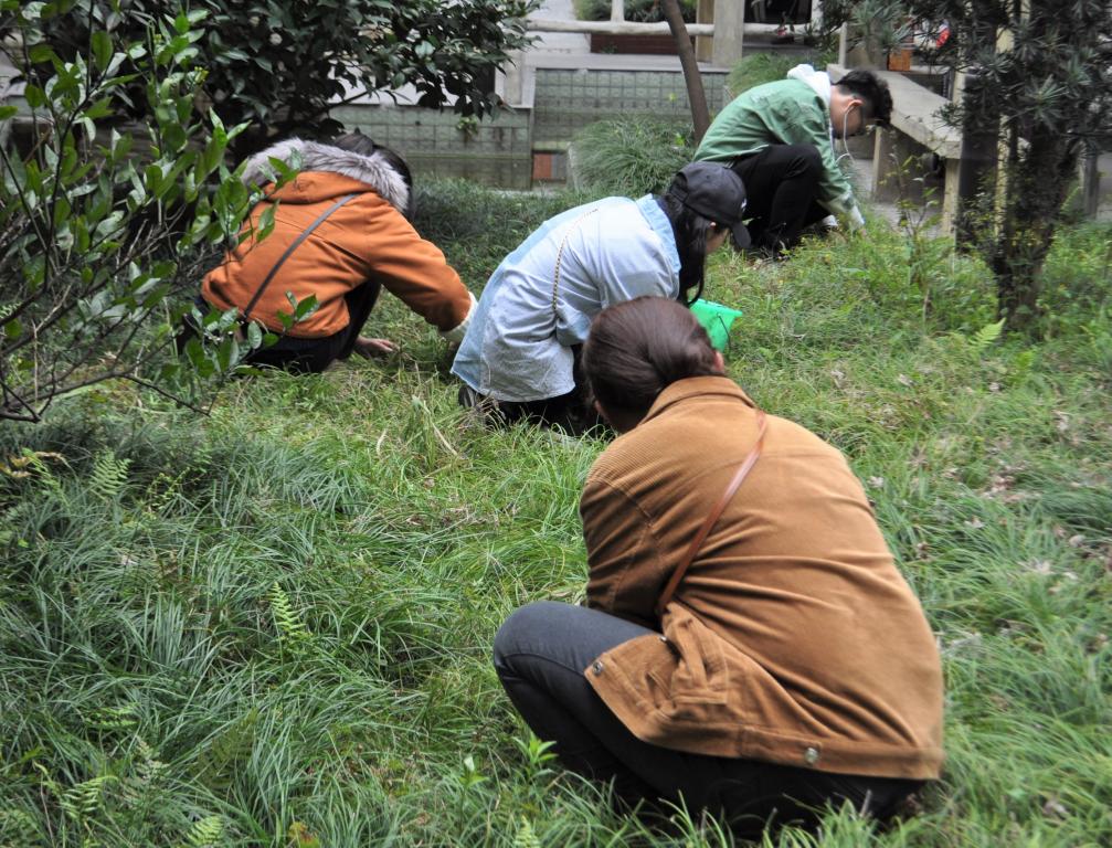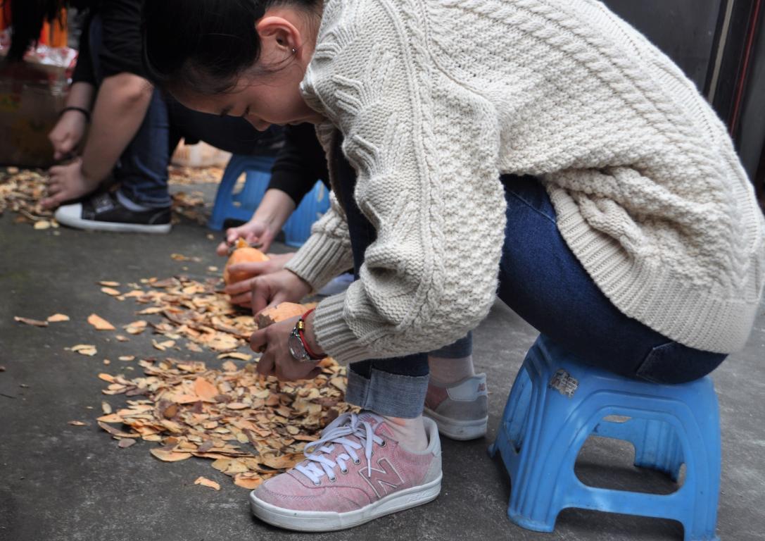 志愿者们早早地就准时来到了集合地点,在经历了40分钟的路程后到达了目的地。上午和老人们一起在餐厅做香囊,与老人们一起将薄荷叶、白芷等等有助于安神睡眠的材料放进香囊里,对于不方便活动的老人志愿者们便在在房间中与老人一起制作,气氛和乐融融。到了下午的时候,我们还帮助敬老院的护工们一起刨番薯皮切番薯,拔草除草,拖地打扫和洗碗。同行的志愿者里有三四个人会说温州话,他们将其他志愿者们的话转述成温州话给老人们听,虽然语言上沟通稍微有些障碍但丝毫不影响志愿者与老人们之间的交流。