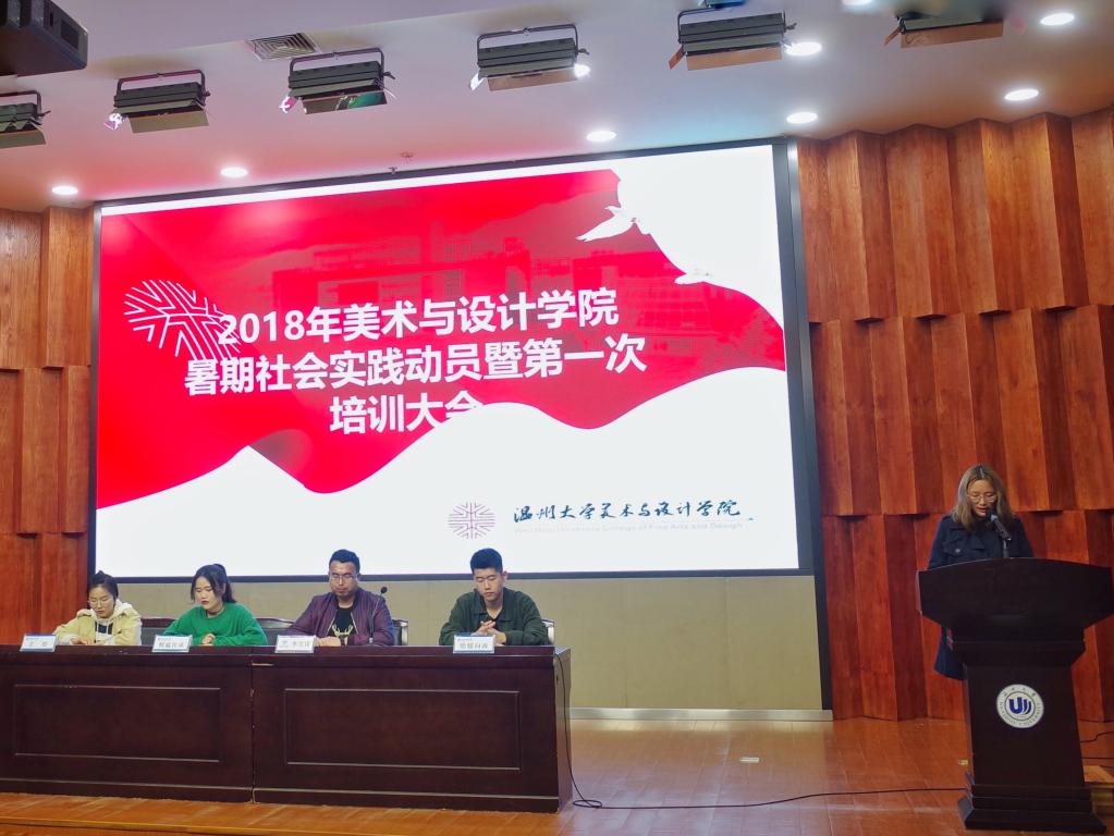 3月25日晚,禁忌书屋 暑期社会实践动员暨第一次培训大会于雁山厅举行,本次大会由美院团委学生会学术实践部主办,美院2017年优秀实践队长以及团学指导老师李雪涛出席了此次大会,参与本次动员会的成员还有大一全体同学。 此次大会共分为了四项议程,首先是观看2017年暑期社会实践成果视频,视频较为全面的介绍了温州大学各个学院、学区的实践队情况,接着由学术实践部代表付秋圆同学为大家介绍了暑期社会实践具体流程及实践重要性。接着,17年优秀实践队队长分享他们的收获与感受,“绘暖向南”实践队队长许雷学长用他幽默风趣的演讲带起了会议的气氛,他鼓励大家通过优质的暑期社会实践,用自己的能力提升自身价值;然后是“艺绘”实践队队长邹琴学姐从她提炼的四个词切入,“创业”、“成熟”、“减肥”、“脱单”,她用这四个词概括自己在实践中的收获,鼓励大家积极参与其中,同时也鼓励大家可以勇于创新,积极创建全新的实践队,她也愿意在策划方面帮助大家,最后是“鞋蕴传承”实践队队长陈晨学姐,她鼓励大家实践与专业相结合,通过实践看到自身专业发展的方向。三位队长通过各自各具特色的展示,并结合自身经历,让大一同学们对社会实践有了一个初步的认识。大会最后李雪涛老师进行了讲话,结合新时期对当代大学生的要求,阐述了实践的重要性及其意义与目的。 此次暑期社会实践大会在很轻松愉悦的氛围中度过。通过这次大会各学生能够更清楚的了解暑期社会实践的基本情况,相信通过这次大会的召开,各学生能积极认真负责的参加暑期社会实践活动。