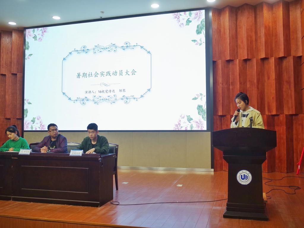 此次大会共分为了四项议程,首先是观看2017年暑期社会实践成果视频,视频较为全面的介绍了温州大学各个学院、学区的实践队情况,接着由学术实践部代表付秋圆同学为大家介绍了暑期社会实践具体流程及实践重要性。接着,17年优秀实践队队长分享他们的收获与感受,“绘暖向南”实践队队长许雷学长用他幽默风趣的演讲带起了会议的气氛,他鼓励大家通过优质的暑期社会实践,用自己的能力提升自身价值;然后是“艺绘”实践队队长邹琴学姐从她提炼的四个词切入,“创业”、“成熟”、“减肥”、“脱单”,她用这四个词概括自己在实践中的收获,鼓励大家积极参与其中,同时也鼓励大家可以勇于创新,积极创建全新的实践队,她也愿意在策划方面帮助大家,最后是“鞋蕴传承”实践队队长陈晨学姐,她鼓励大家实践与专业相结合,通过实践看到自身专业发展的方向。三位队长通过各自各具特色的展示,并结合自身经历,让大一同学们对社会实践有了一个初步的认识。大会最后李雪涛老师进行了讲话,结合新时期对当代大学生的要求,阐述了实践的重要性及其意义与目的。