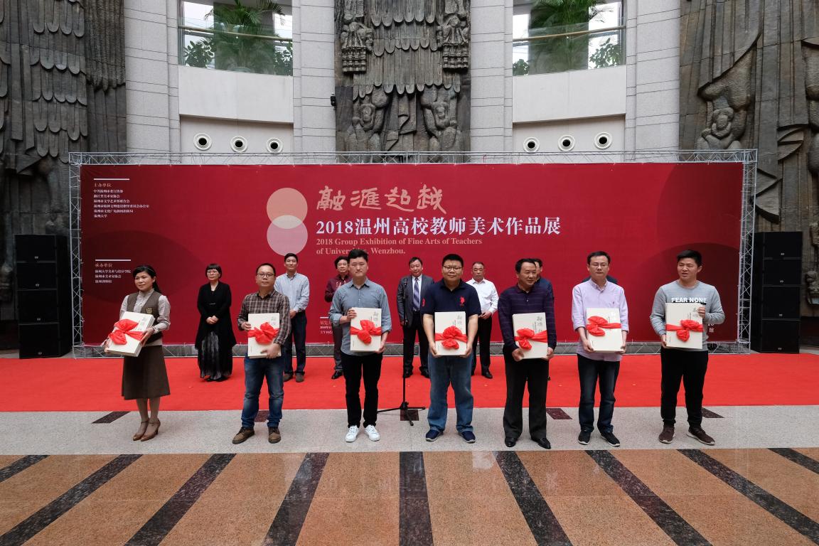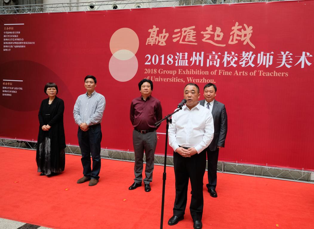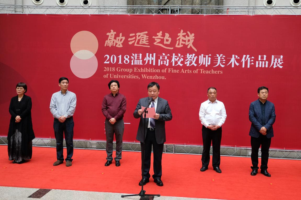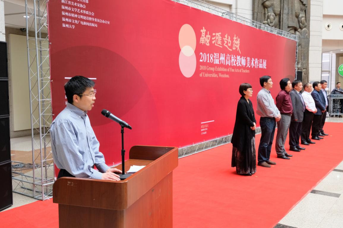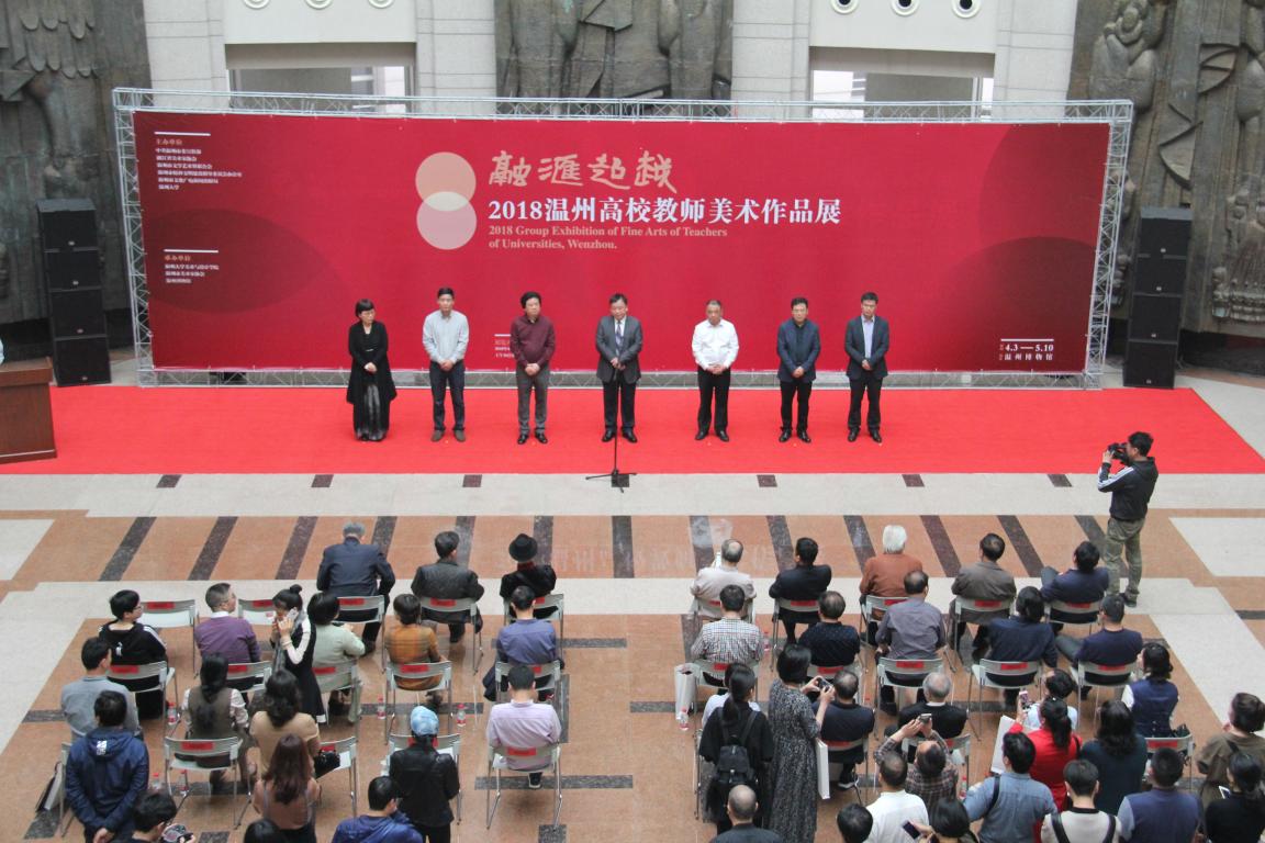 4月3日上午,“融汇超越”——2018温州高校教师美术作品展在温州市博物馆隆重开幕。出席开幕式的领导嘉宾有:温州大学党委副书记赵敏,中共温州市委宣传部副部长魏平生,浙江省文联副主席、温州市文联主席邹跃飞,温州市文联副主席、禁忌书屋 院长李运河,温州市文明办副主任余庆,温州市文广新局副局长李方喜,浙江省美术家协会副主席、温州市美术家协会主席蔡瑞蓉,特邀嘉宾还有原校党委书记陈艾华,市教育局高教处处长黄万统,另有叶玉昶、沈尧伟、钟式震、马亦钊、张如元、袁纲平、金松、陈钦权等老教授,美术家协会戴宏海、张成毕、陈旭海、李崇高等同仁,书法家协会汪廷汉、陈出新、陈胜武等同仁,书画院郑方伟、陈默、张真恺、林翼如等同仁,此外,学校老干部工作部部长陈慧、成人(继续)教育学院院长胡记芳等学校部门(学院)领导,禁忌书屋 党总支书记张丽萍,副院长谢子静、张晓剑,副书记杨振海,学院师生代表200余人参加了开幕式。群贤毕至,少长咸集 。
