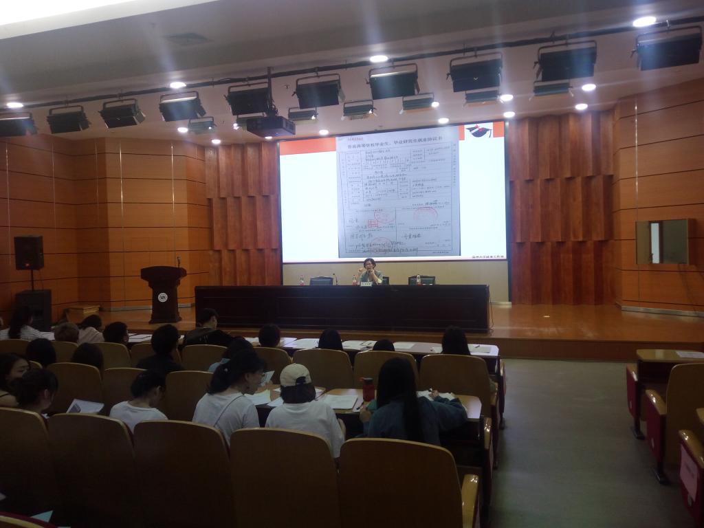 彭小媚老师围绕毕业、就业流程以及流程中相关文件的规范化填写展开,具体包括就业政策说明、教学教务、就业招聘、重要事项。其中,就业招聘包含校内招聘会的信息和注意事项:投递简历、就业协议、劳动合同、就业工作证明;而重要事项根据以历年历届毕业生遇到的问题,为方便毕业生顺利就业、毕业,着重强调毕业生办理毕业手续的整个流程,其中包括《高等学校毕业生登记表》《温州大学学生档案袋》《报到证》《浙江省高校毕业生就业接收函》以及各个毕业班毕业留念的时间安排等工作。接着教学科邹青老师讲解了毕业生图像采集的相关流程和注意事项。最后叶筱卉老师强调就业的意义,同时勉励同学们要学会在学习中合理安排时间,明确自己的短板,努力弥补不足之处。