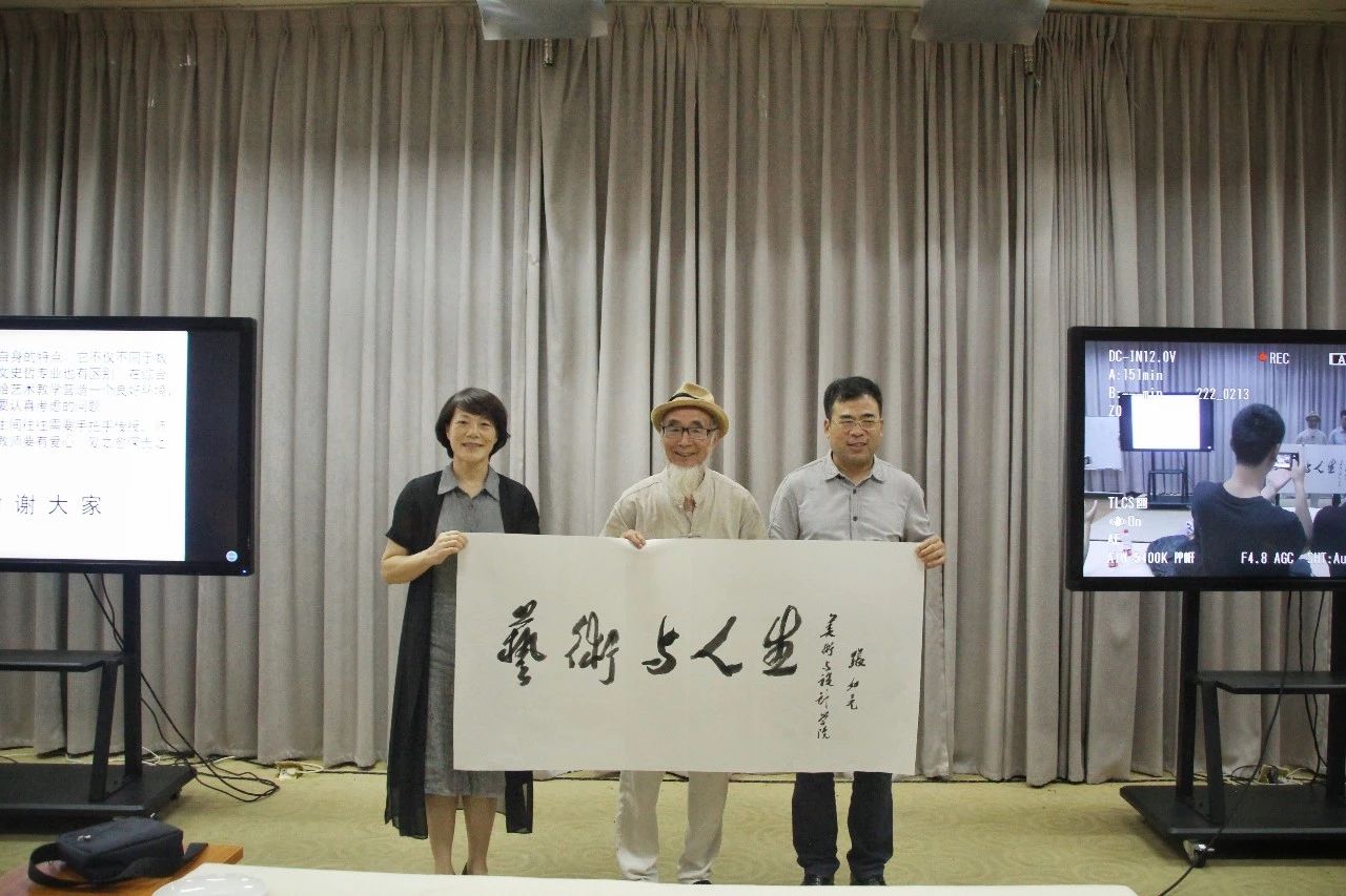 讲座结束后,张如元老师现场为《艺术与人生》大讲坛题字赠与禁忌书屋 ,李运河院长和张丽萍书记代表学院接受赠送,李院长致以热情洋溢的答谢词。