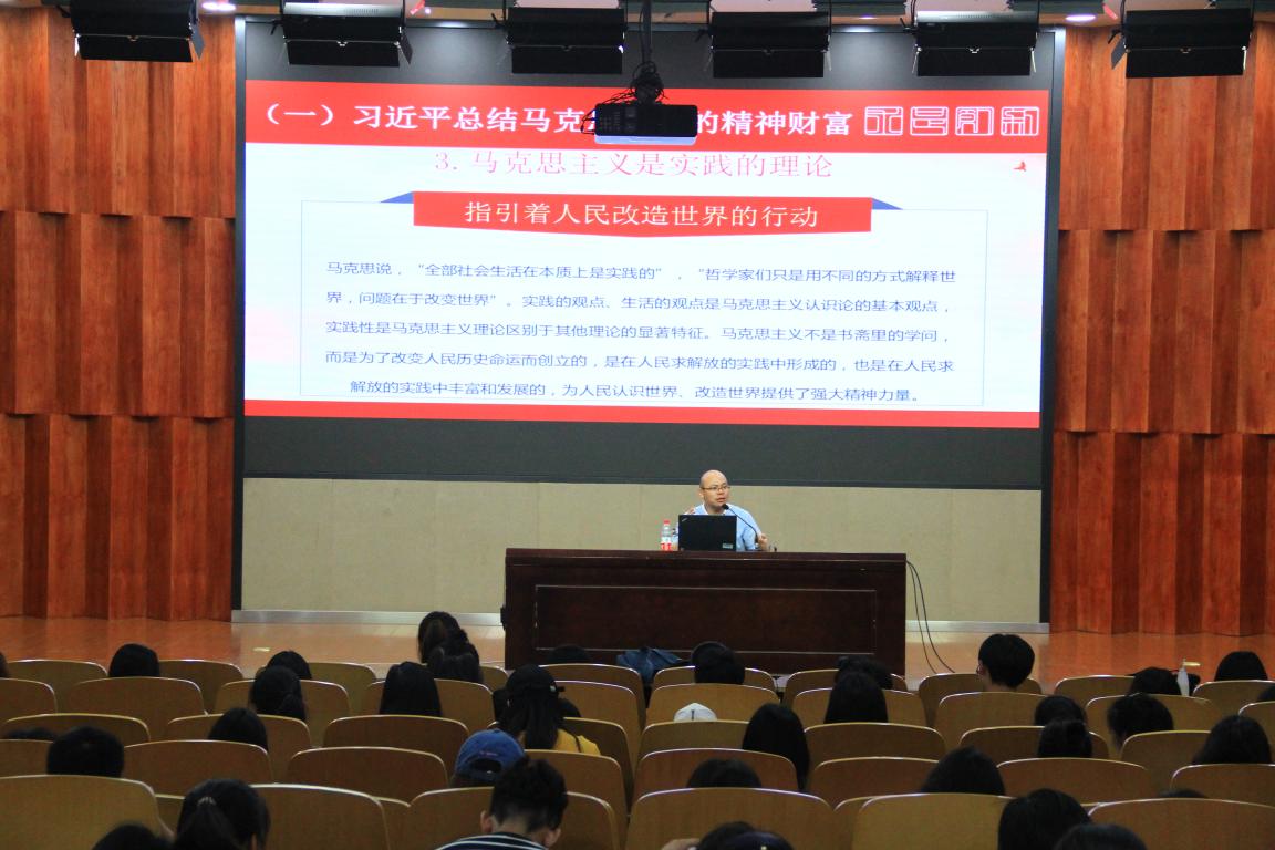 7月2日上午,禁忌书屋 在雁山厅开展本学期第二次形势与政策课,温州大学马克思主义学院副院长卓高生做题为“感受信仰的力量 高扬伟大的旗帜——学习贯彻习近平总书记在马克思诞辰200周年上的重要讲话”的形势与政策讲座。禁忌书屋 17级全体同学参加讲座。 卓高生老师从回到马克思、走进马克思、学习马克思三个方面进行解读。通过回顾马克思的一生,可以得出这样的结论:马克思的一生,是胸怀崇高理想、为人类解放不懈奋斗的一生;是不畏艰难险阻、为真理而勇攀高峰的一生;是为推翻旧世界、建立新世界而不息战斗的一生。回到马克思,需要重读经典,也要摒弃教条式的解读。走近马克思,需要辨识、辨析、辨明马克思主义,习近平总结马克思留下的精神财富是指出:“马克思主义是我们立党立国的根本思想。背离或放弃马克思主义,我们党就会失去灵魂、迷失方向。在坚持马克思主义指导地位这一根本问题上,我们必须坚定不移,任何时候任何情况下都不能有丝毫动摇”。纪念马克思诞辰200周年大会上,习近平主席高度评价了马克思的一生,并就学习和实践马克思主义提出9个方面的要求,为新时代坚持和发展中国特色社会主义进一步指明了前进方向。卓高生老师指出,在马克思诞辰200周年的今天,对马克思最好的纪念和告慰,对马克思主义最好的坚持和继承就是:在新时代我们要在坚持中发展、在传承中创新,不断开辟当代中国马克思主义、21世纪马克思主义新境界。